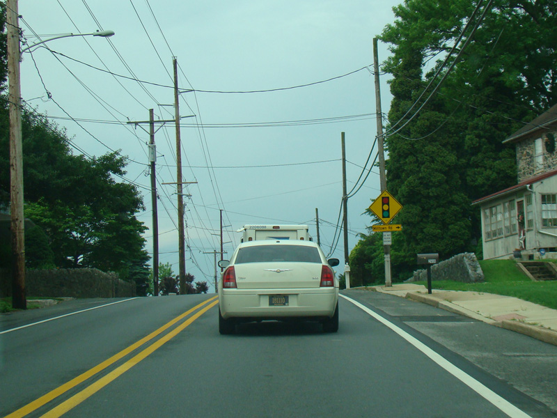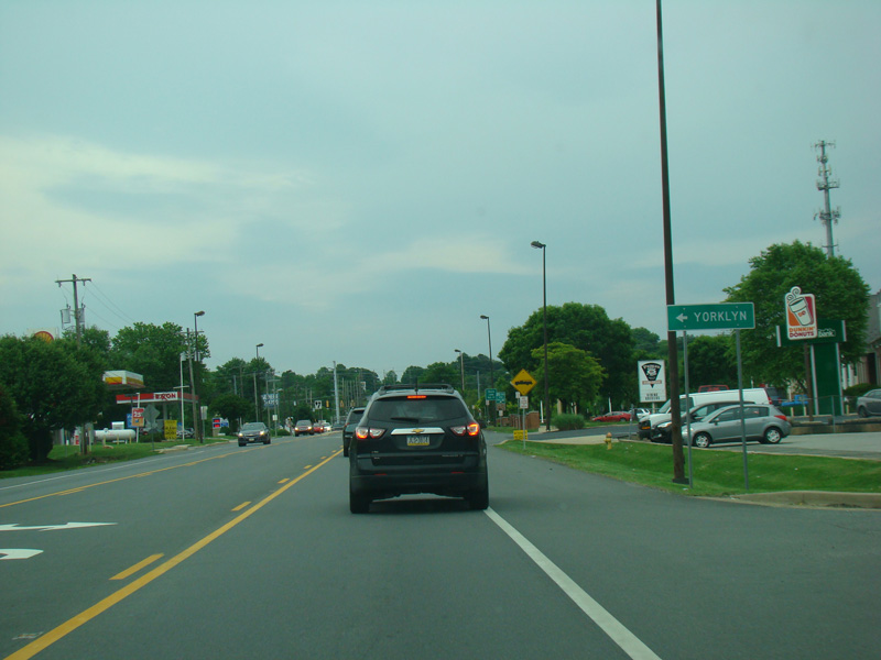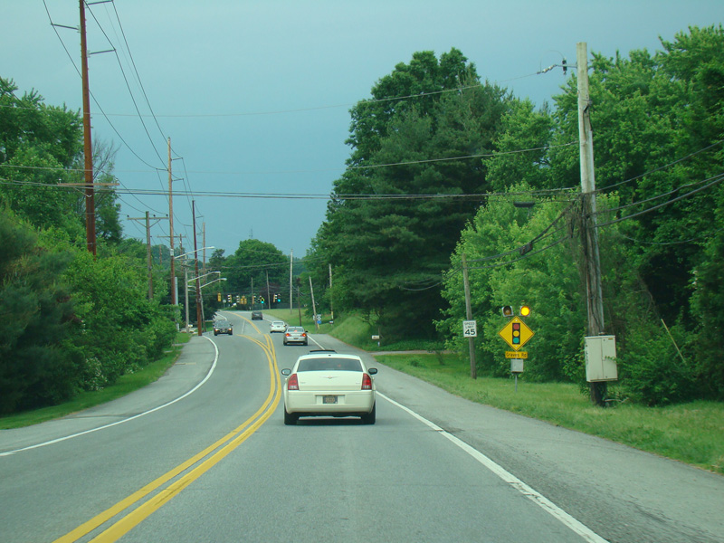 Old Lancaster Pike splits off to the right, and then there is a traffic light at Valley Road.