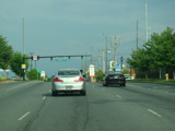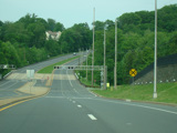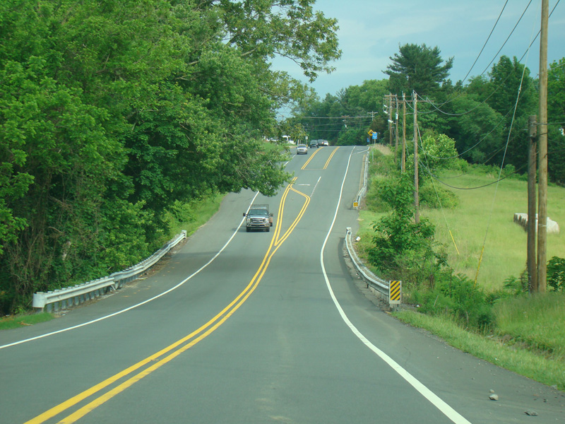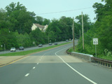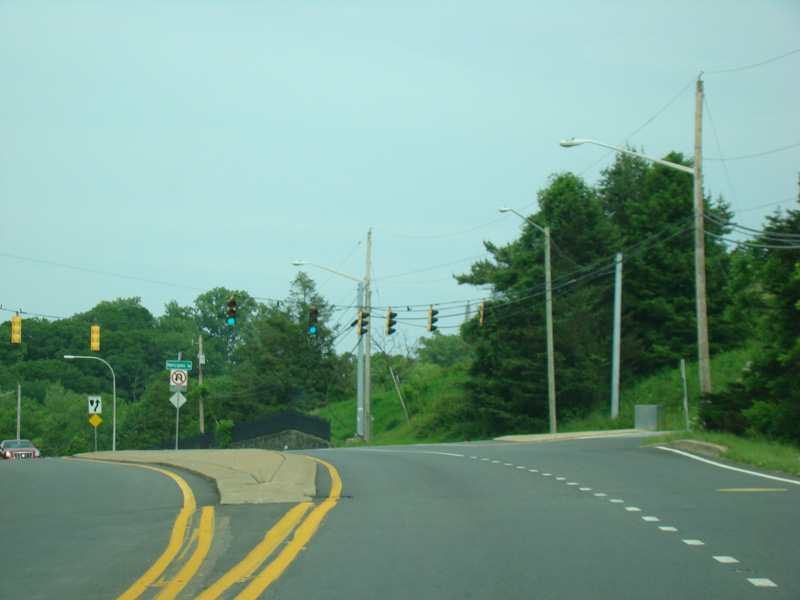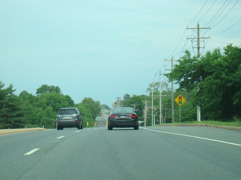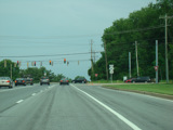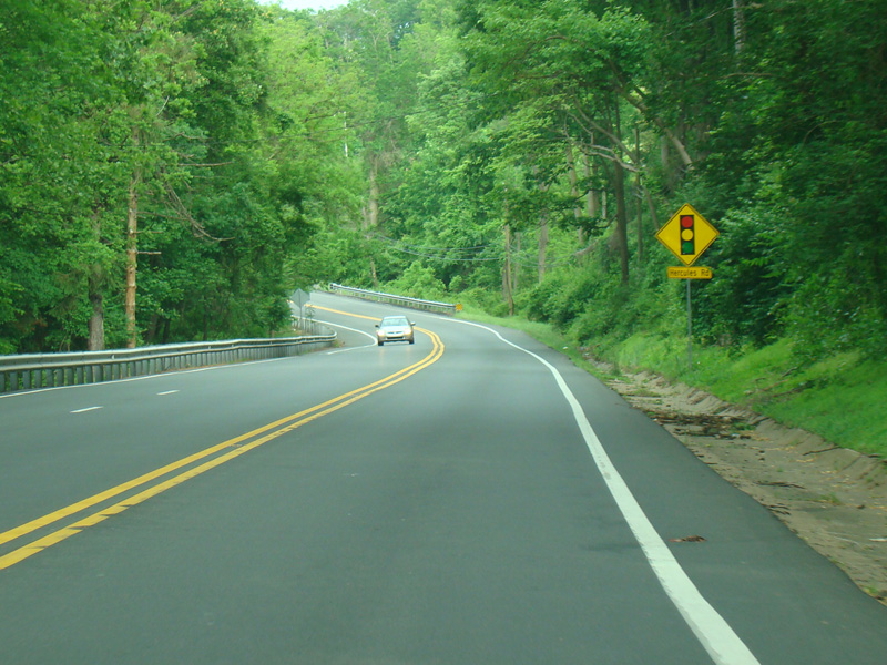 Lancaster Pike widens to become a four-lane divided highway. There is a traffic light at Hercules Road.