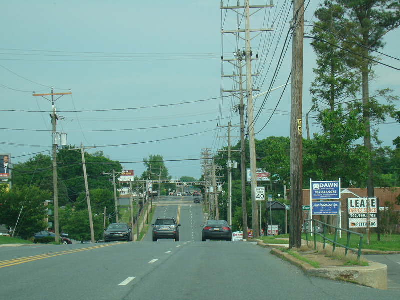 DE 100 splits off to the right onto Dupont Road at a traffic light.