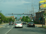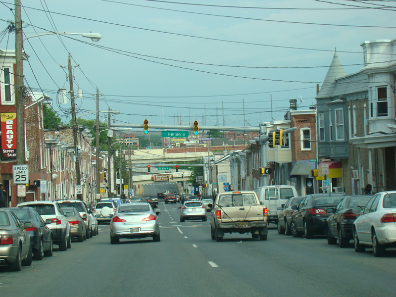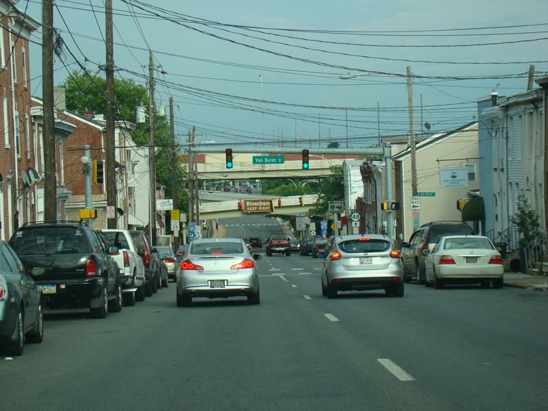 Lancaster Avenue is now a one-way street. Westbound traffic follows Second Street, which runs parallel one block to the left. There are traffic lights at Franklin Street, Harrison Street, and Van Buren Street