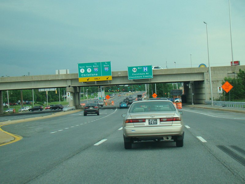 Churchmans Road crosses over the Delaware Turnpike (I-95), but there is no entrance.
