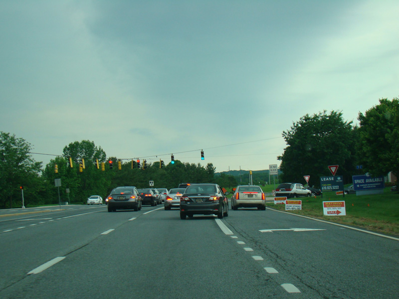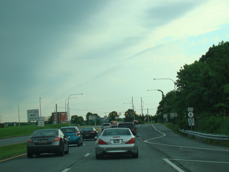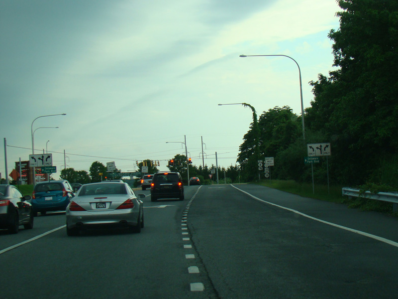 A short distance past the interchange, Churchmans Road ends at Ogletown Stanton Road (DE 4). Turn right to go east or left to go west. Delaware Park Drive is straight ahead.