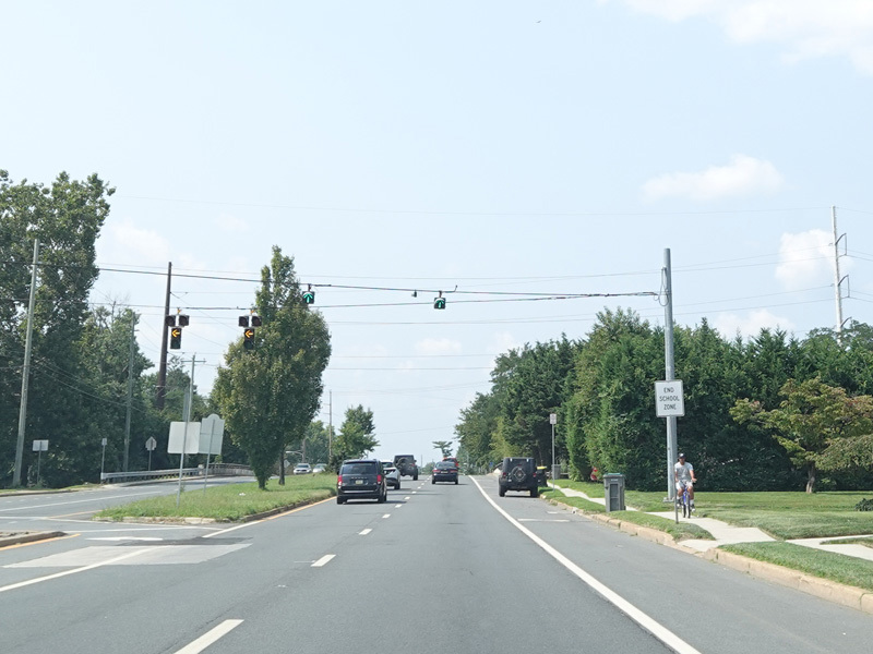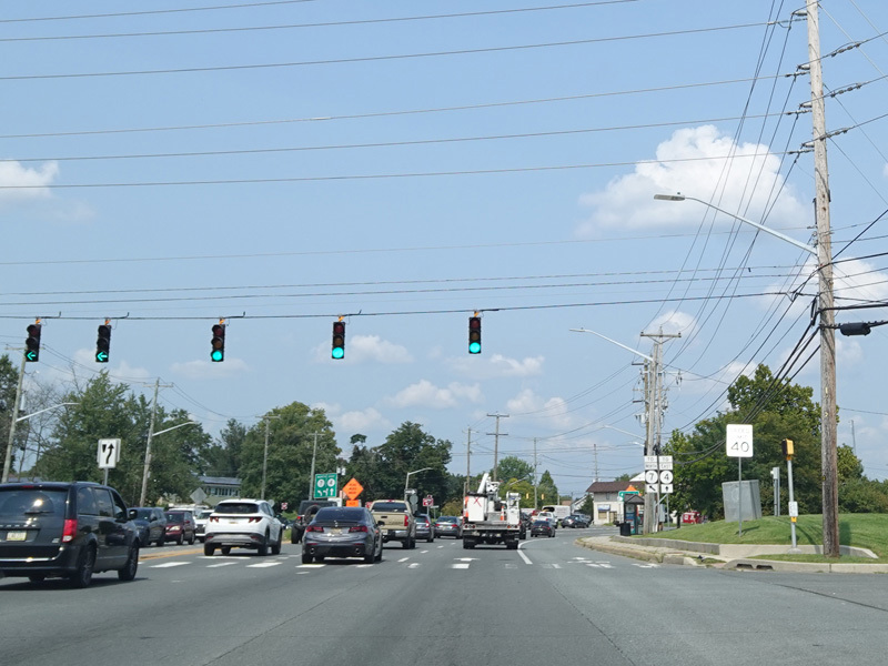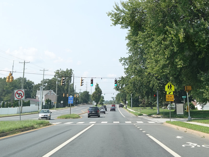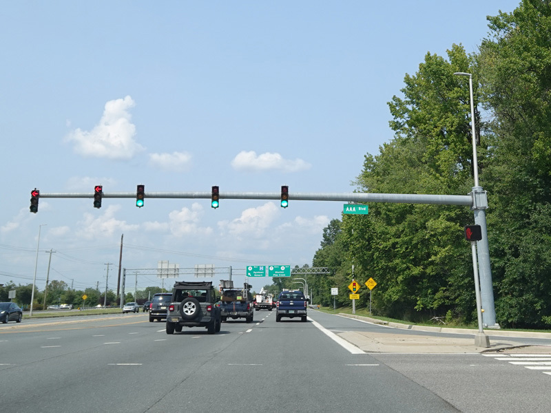 Skipping a short distance, Stanton Christiana Road runs north as a six-lane divided highway. There is a traffic light at AAA Boulevard.