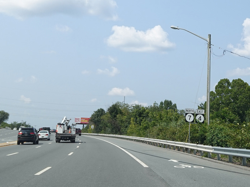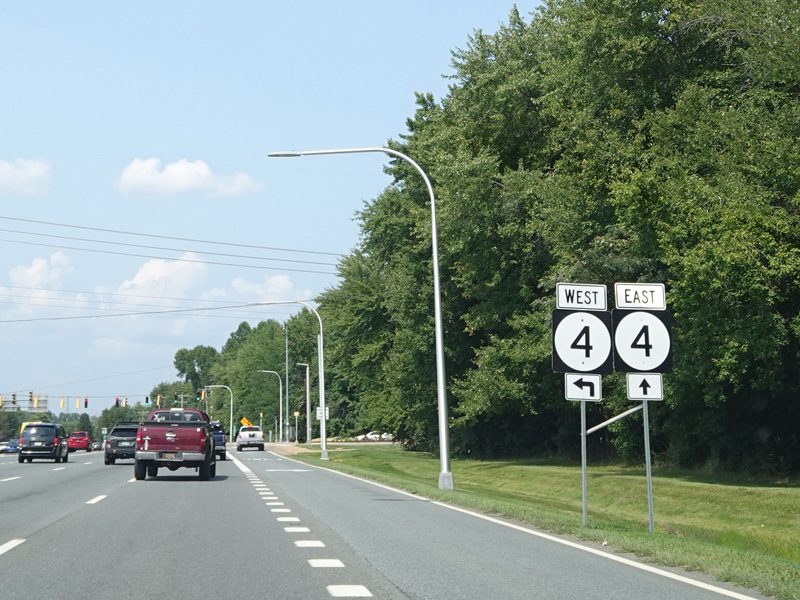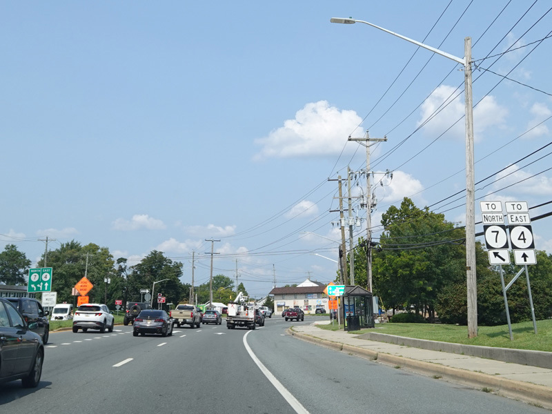 There is a traffic light at Ogletown Stanton Road (DE 4). Turn left to go west. Eastbound DE 4 is multiplexed with DE 7 along Stanton Christiana Road straight ahead.