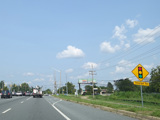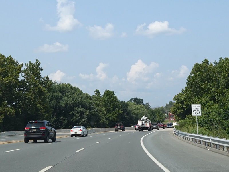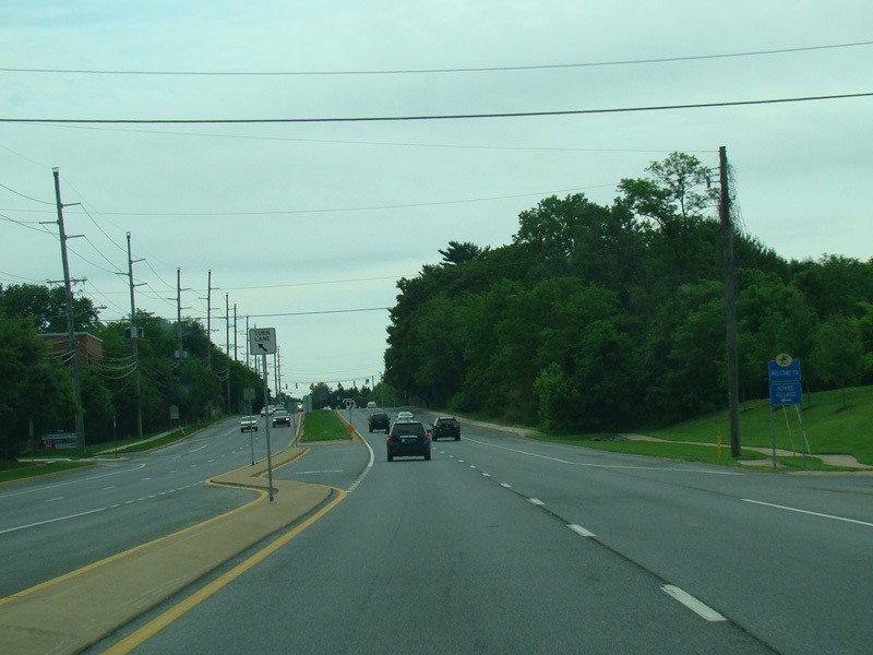 Near the state line, the median ends and Limestone Road narrows down to two lanes.