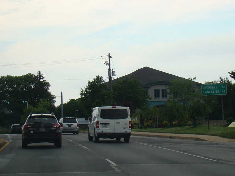 There is a traffic light at Kirkwood Highway (DE 2). Turn right to go east or left to go west.