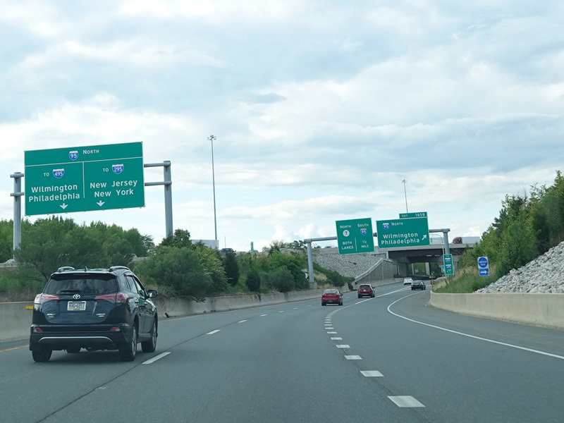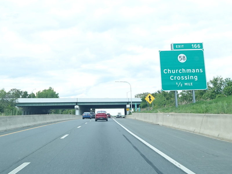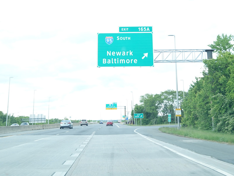 At the end of DE 1, the highway continues north as DE 7. Exits 165B-A are for the Delaware Turnpike (I-95).