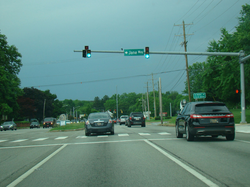 Limestone Road runs south as a four-lane divided road. There is a traffic light at Jane Way.