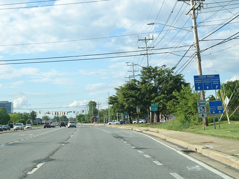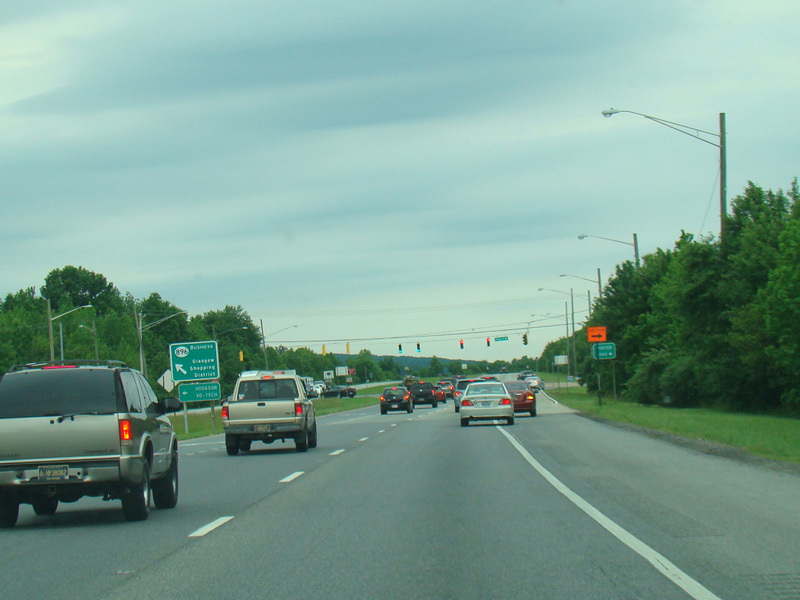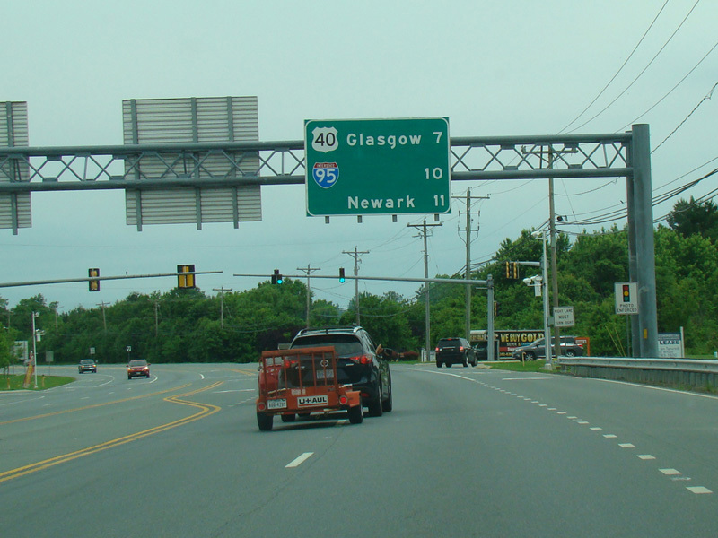 South College Avenue runs north as a four-lane divided highway. There are traffic lights at Corporate Boulevard, Old Coochs Bridge Road, Four Seasons Parkway, Cobble Creek Curve, Glasgow High School, and Old Baltimore Pike.