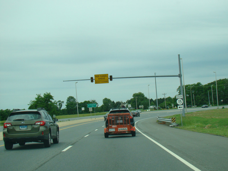On the other side of the bridge, there is a traffic light at which DE 71 splits off to the right onto Red Lion Road.
