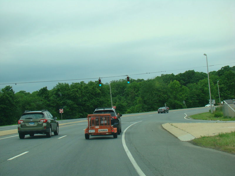 There is a traffic light with jughandles at West Chestnut Hill Road and Old Chestnut Hill Road.