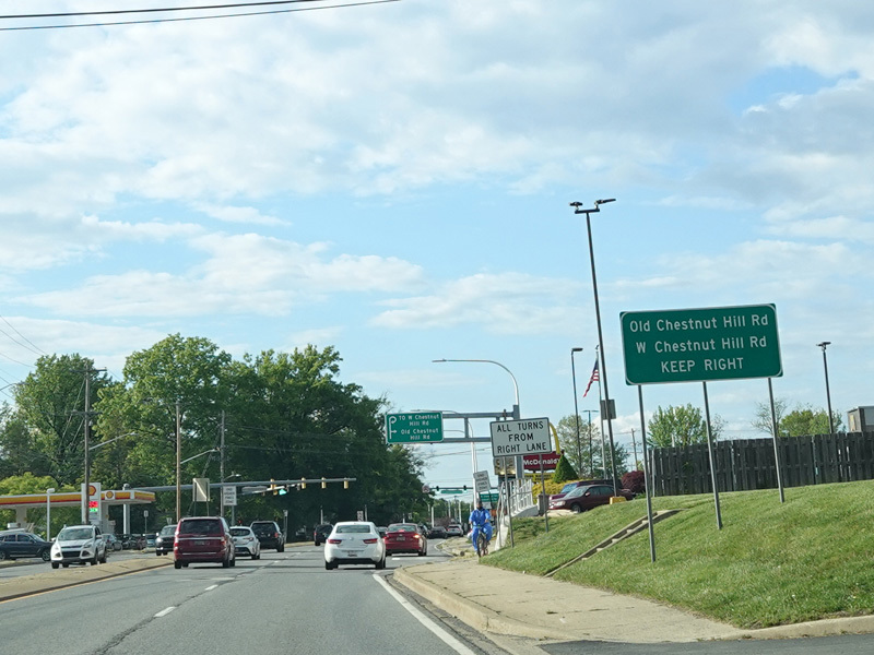 There is a traffic light at DE 4. Turn right onto East Chestnut Hill Road to go east. Turn left onto Christina Parkway to go west and to stay on DE 896.