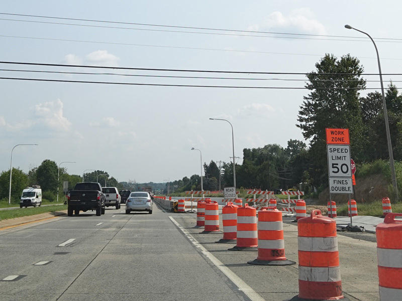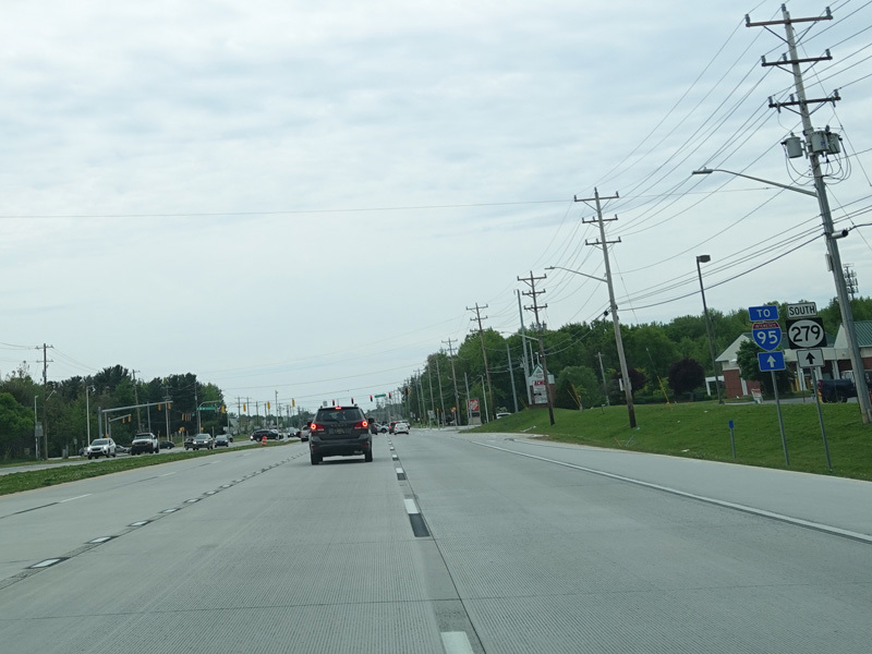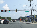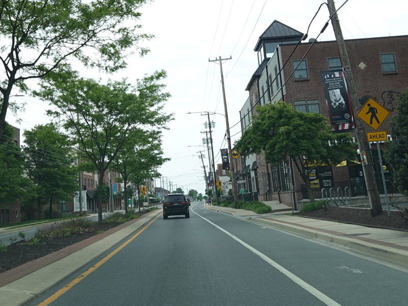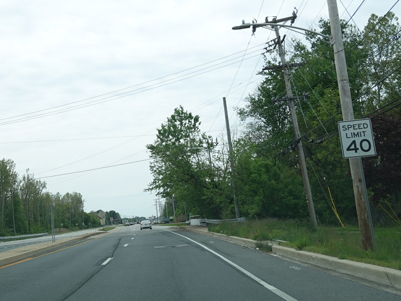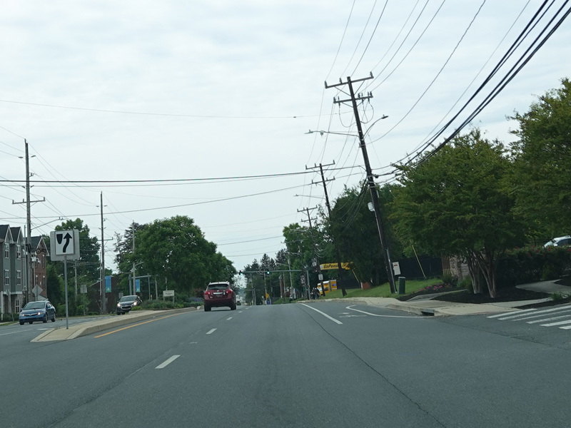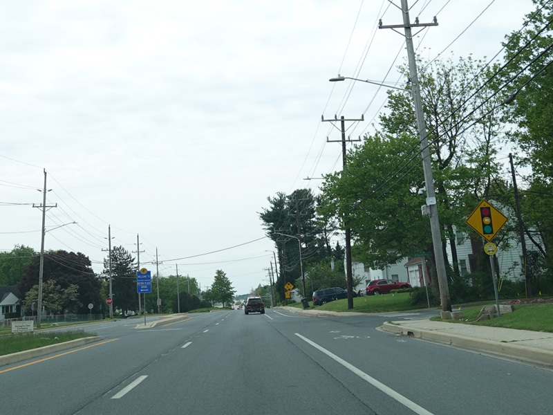 South Main Street widens to four lanes with a grass median. After a short distance, it changes names to become Elkton Road.