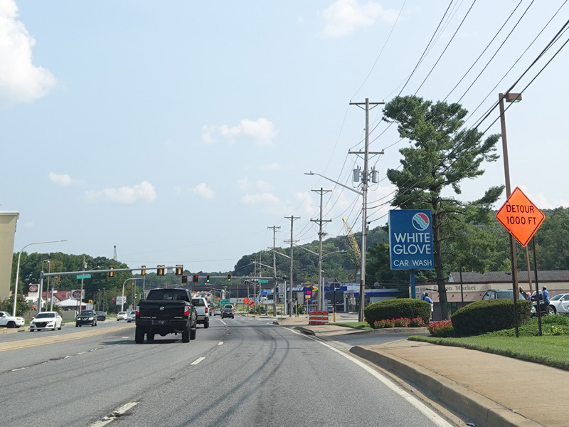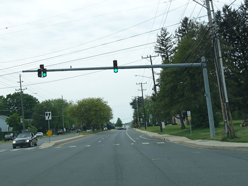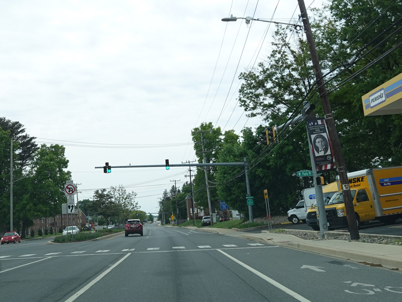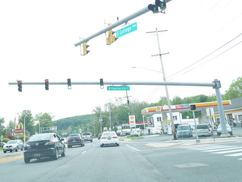 South College Avenue continues south as a four-lane divided highway. There are traffic lights at Glasgow High School and Old Baltimore Pike.