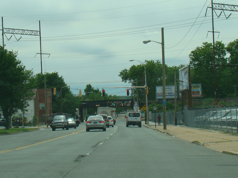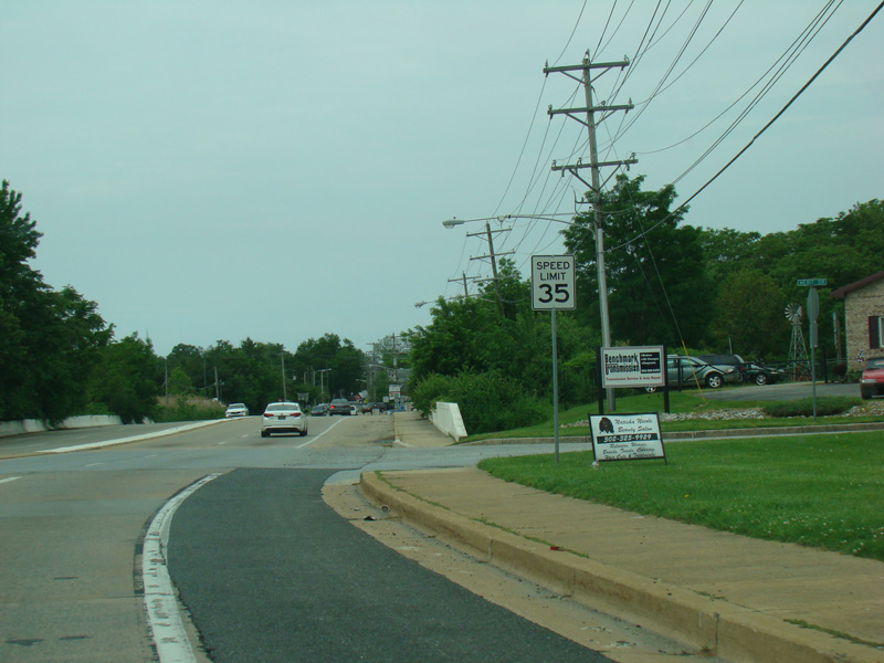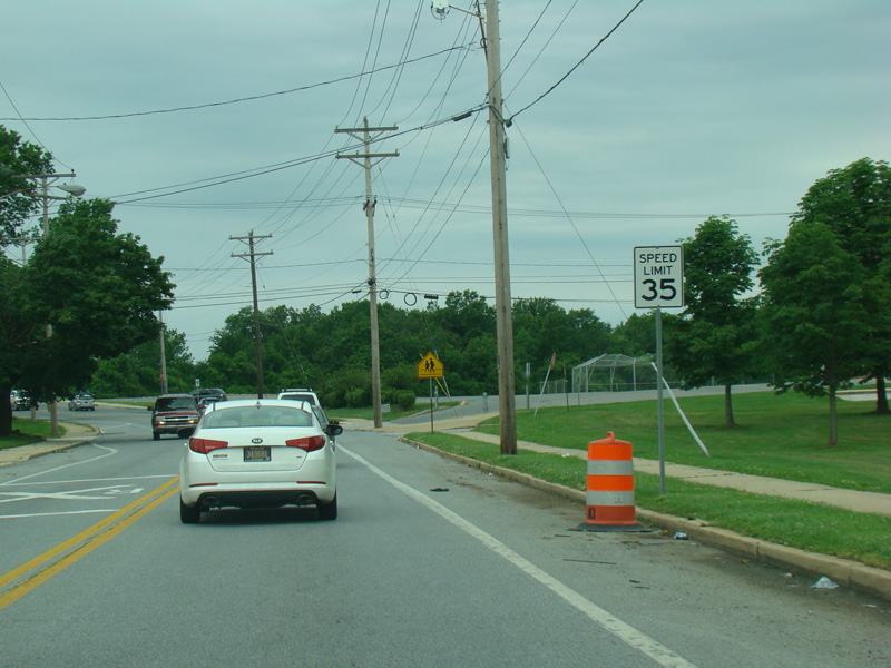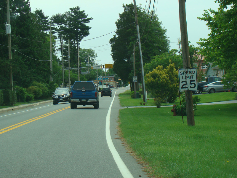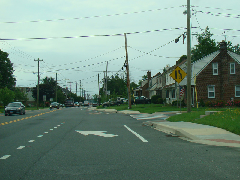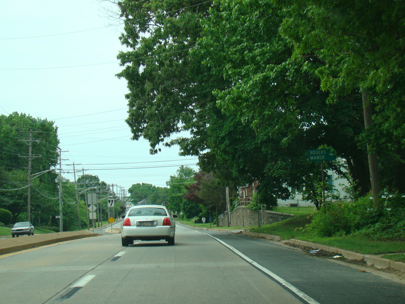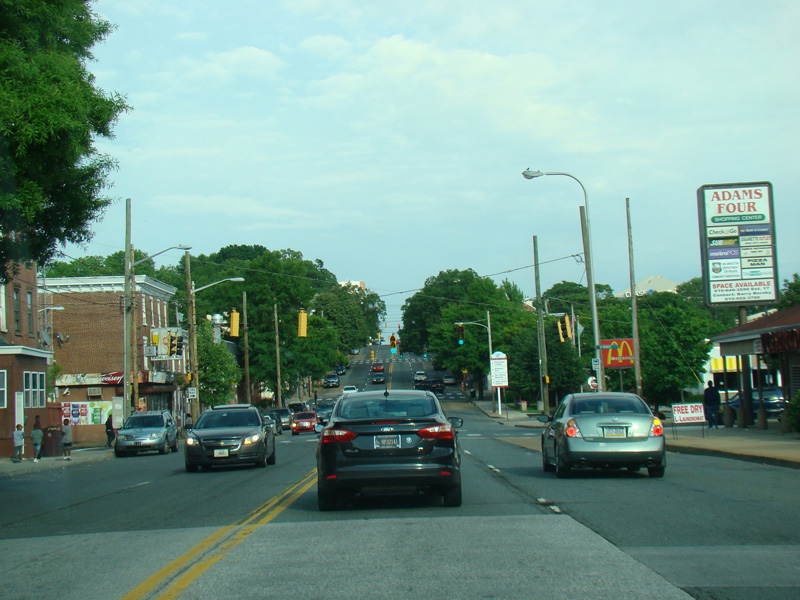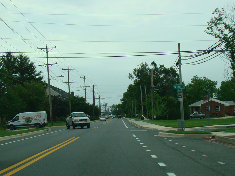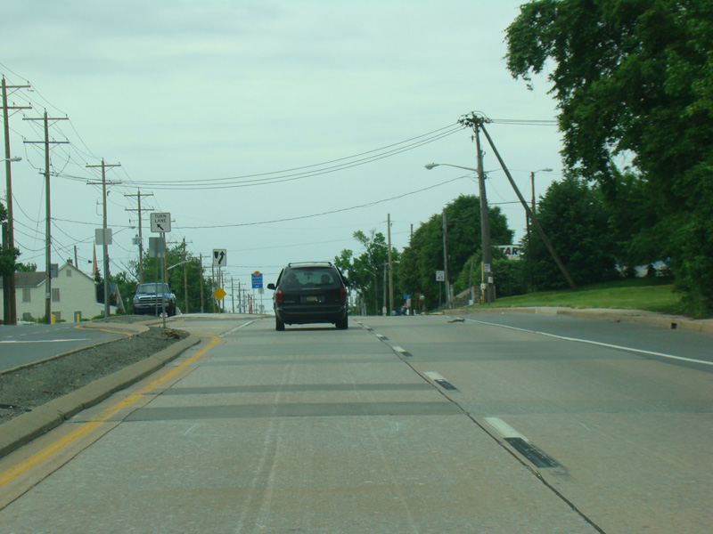 Seventh Street runs southwest through New Castle as a two-lane road. There is a median for a short distance at one point.