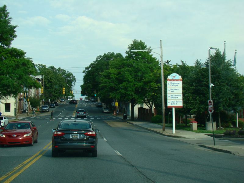 DE 9 is multiplexed with US 13 along Fourth Street and South Heald Street across the Christina River. On the other side, it splits off.