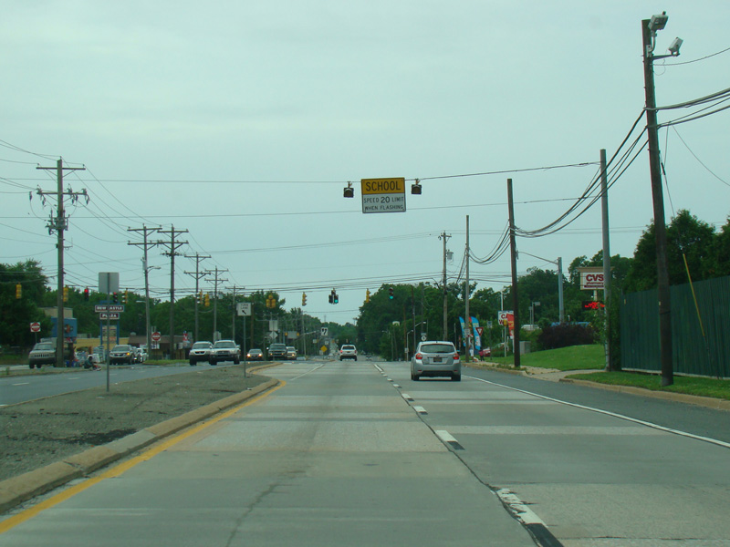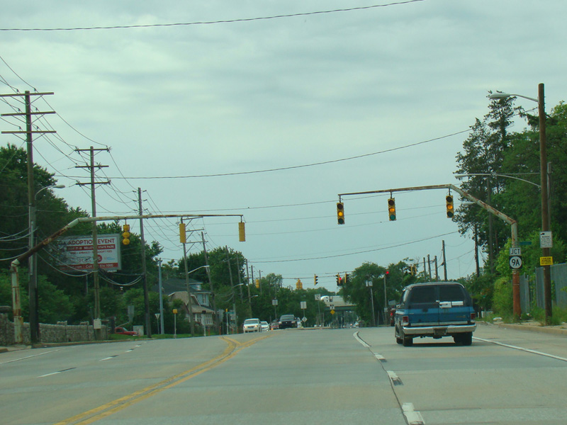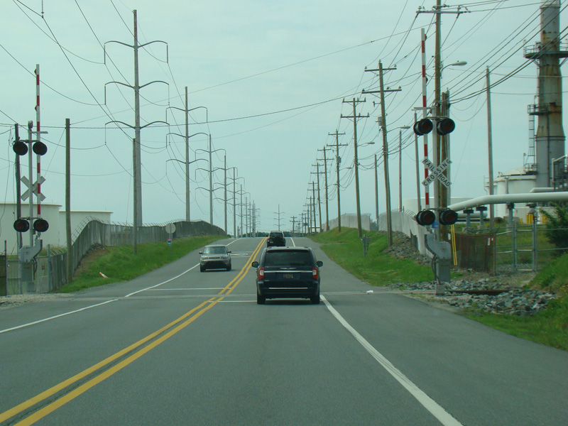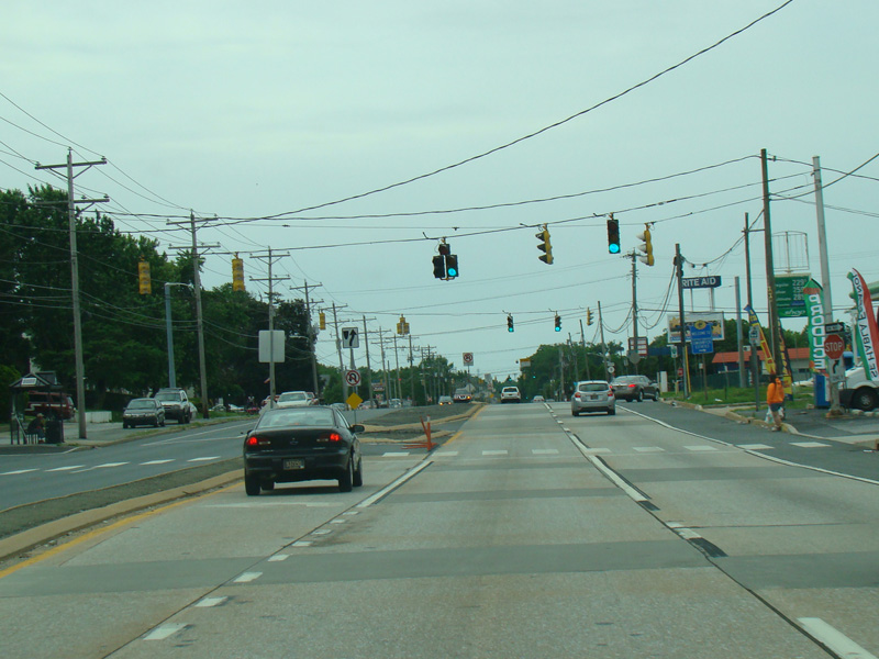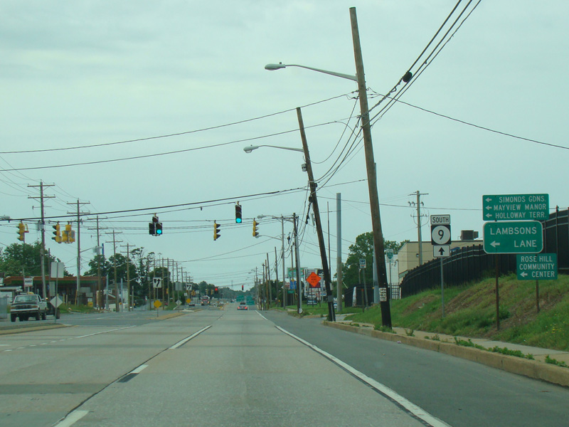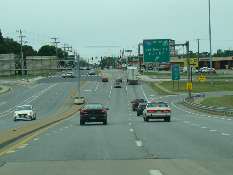 Terminal Avenue (DE 9A) begins on the left at a traffic light.