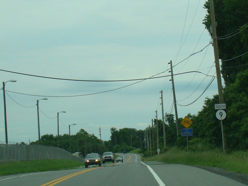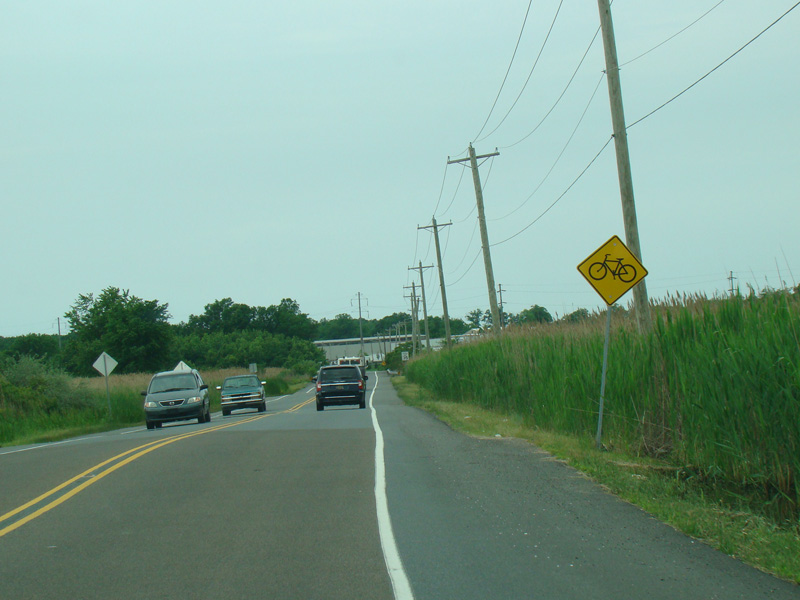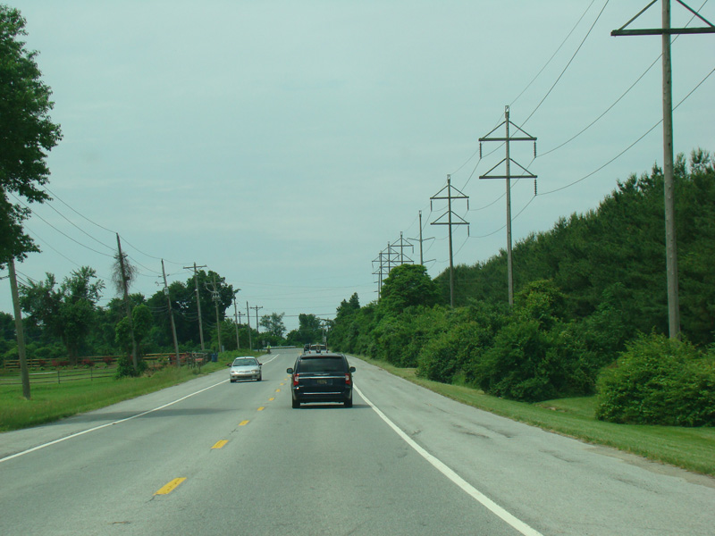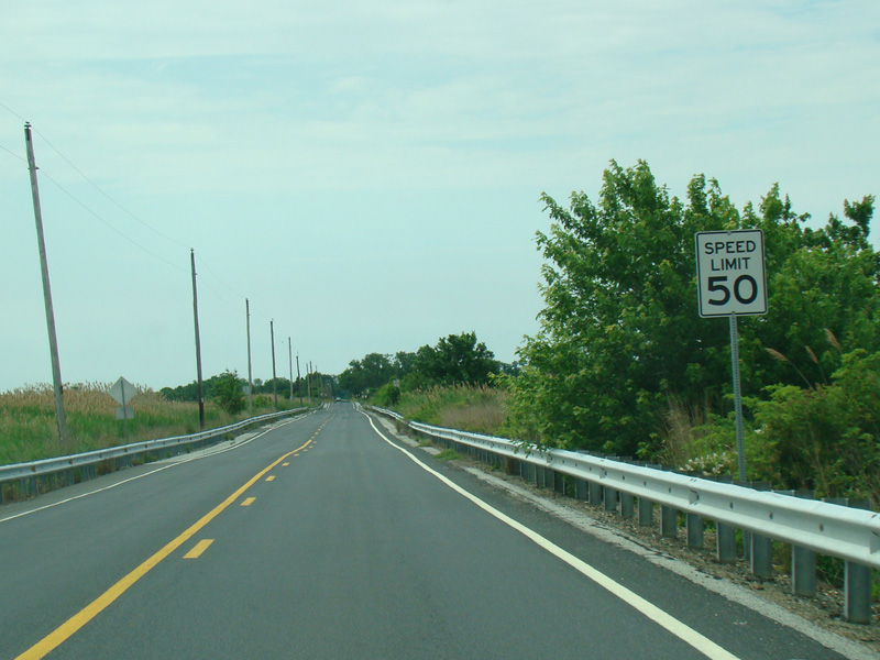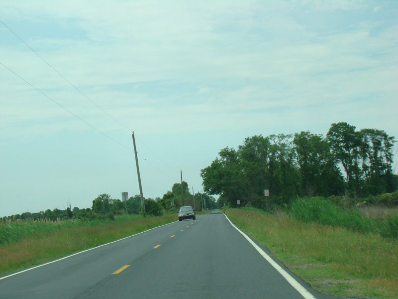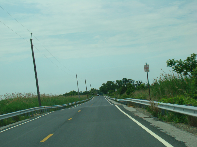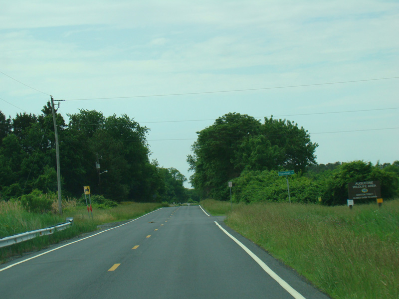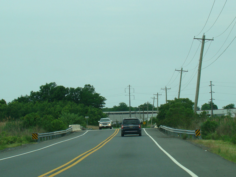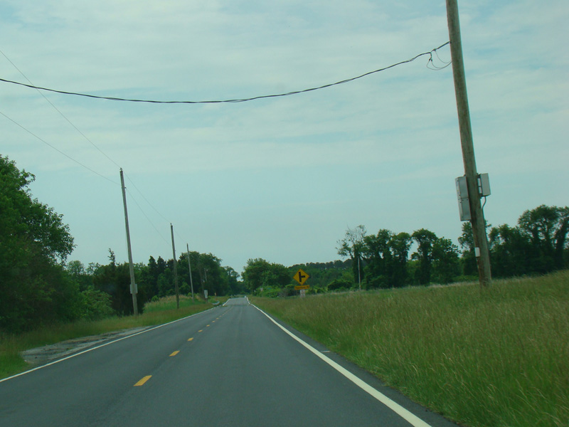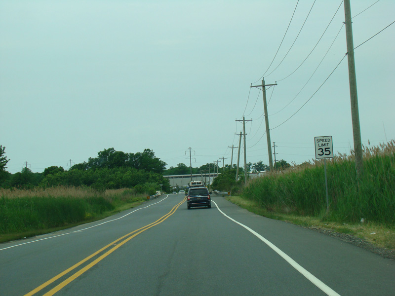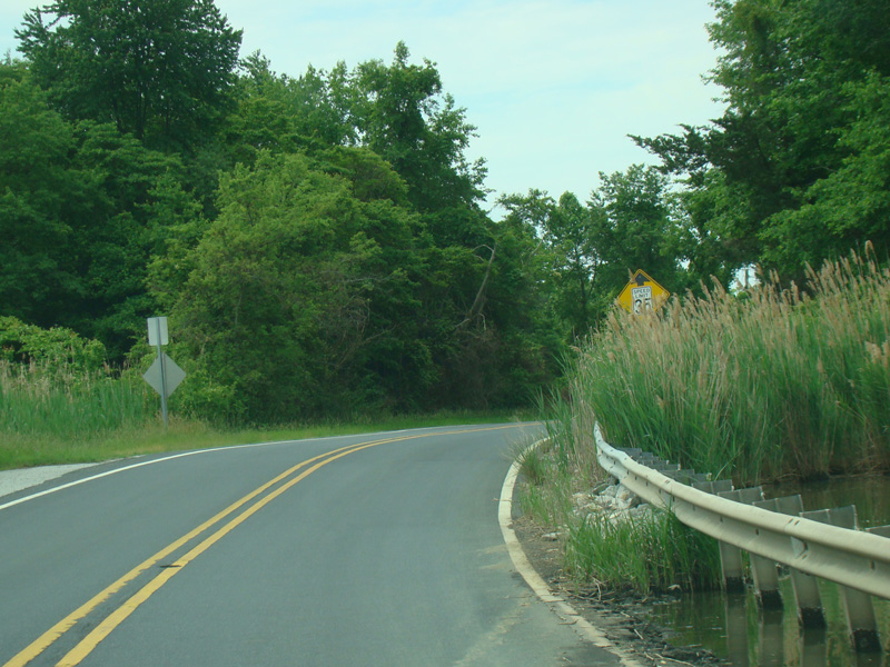 River Road ends at a traffic light at Wrangle Hill Road. Turn left to stay on DE 9. DE 72 begins to the right.
