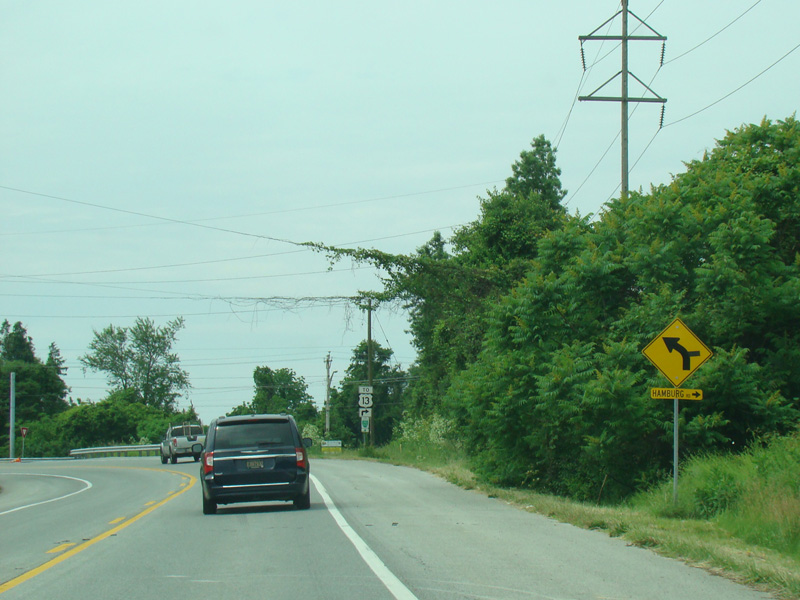 There is a flasher at Hamburg Road. Turn right here to cross over to US 13.