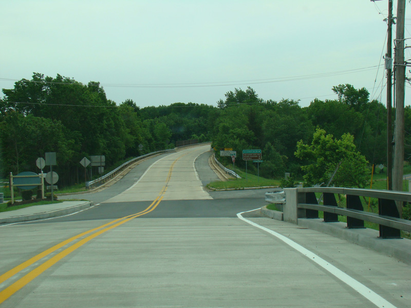 Wrangle Hill Road runs east and then curves to the south, changing names to become 5th Street.