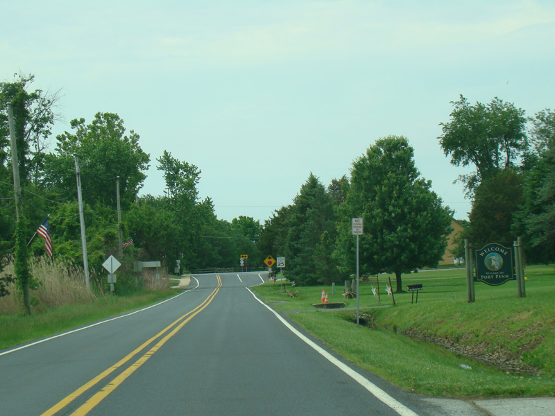 Welcome to Port Penn! The speed limit drops to 35 MPH. Delaware City Port Penn Road ends at a stop sign at Market Street. Turn left to stay on DE 9.