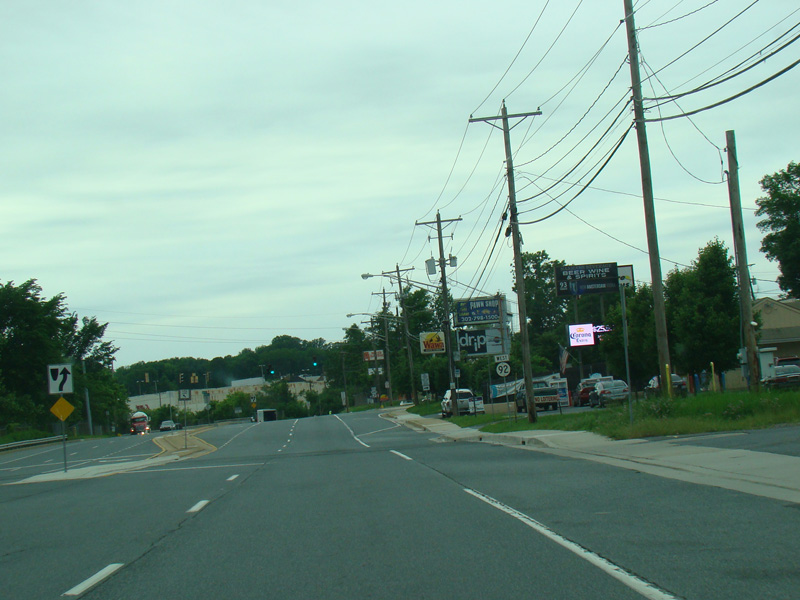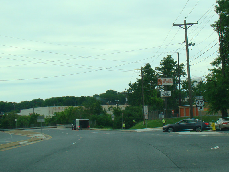 Naamans Road begins at Philadelphia Pike (US 13) in Claymont and runs west as a four-lane divided highway. Hickman Road (DE 491) begins on the right.