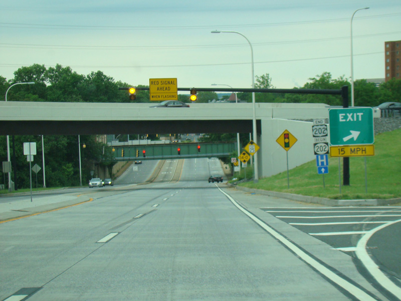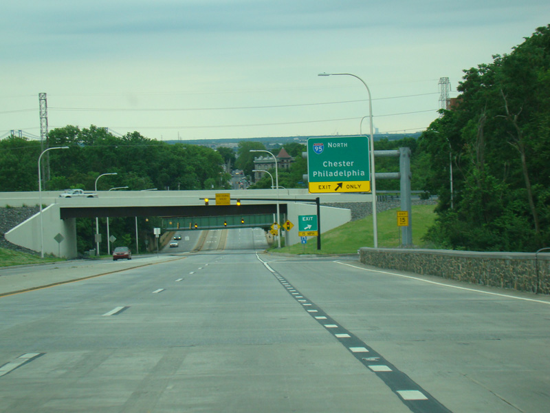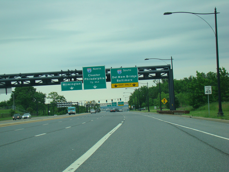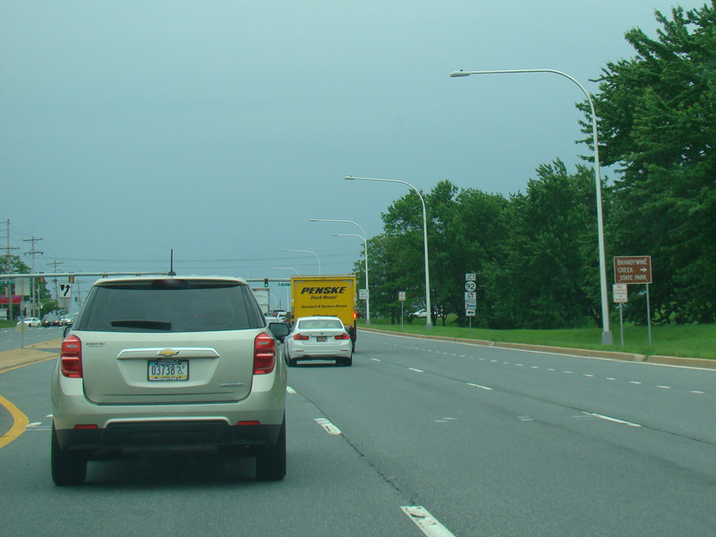 Skipping a few miles to the south, there is an interchange with I-95. US 202 follows I-95 south from here to Basin Road (DE 141), although the signage is misleading and makes it look like US 202 ends here. Concord Avenue (DE 202) is straight ahead.
