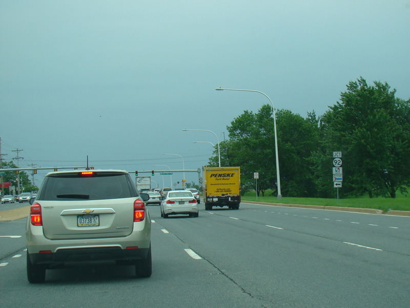 There is a traffic light at DE 92. Turn left onto Naamans Road to go east or right onto Beaver Valley Road to go west.