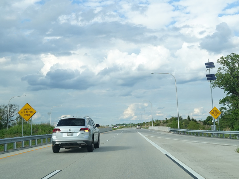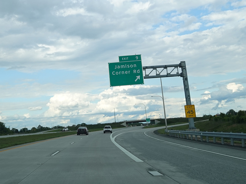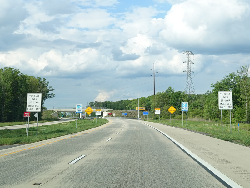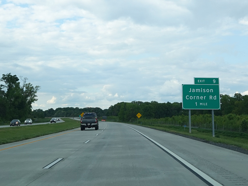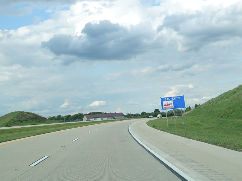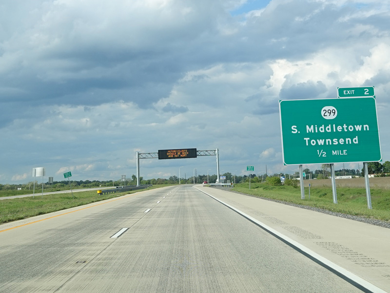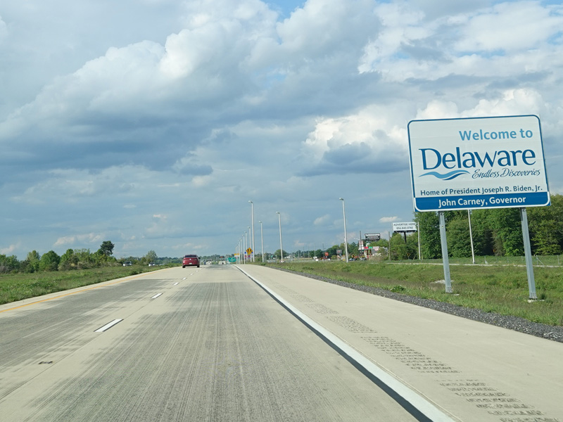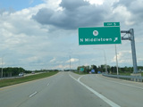 Welcome to Delaware! There is a weigh station just past the state line. Construction work on the new US 301 toll highway is in progress here.