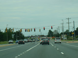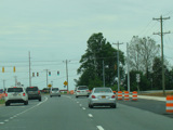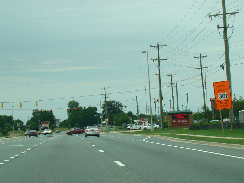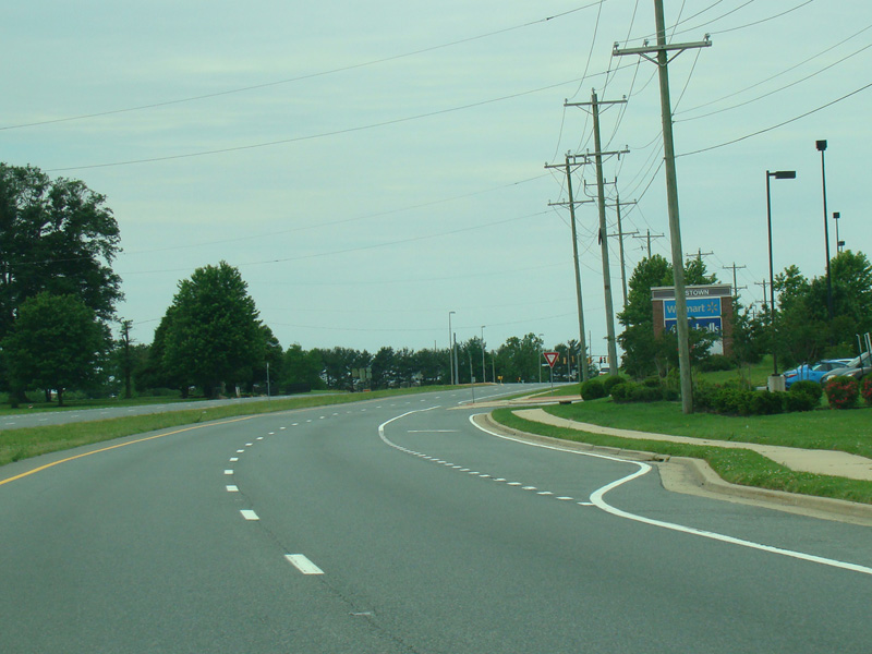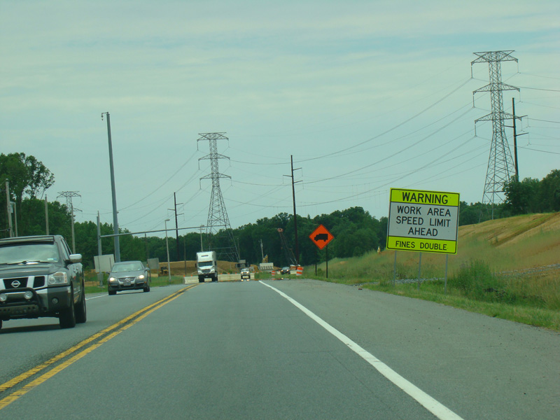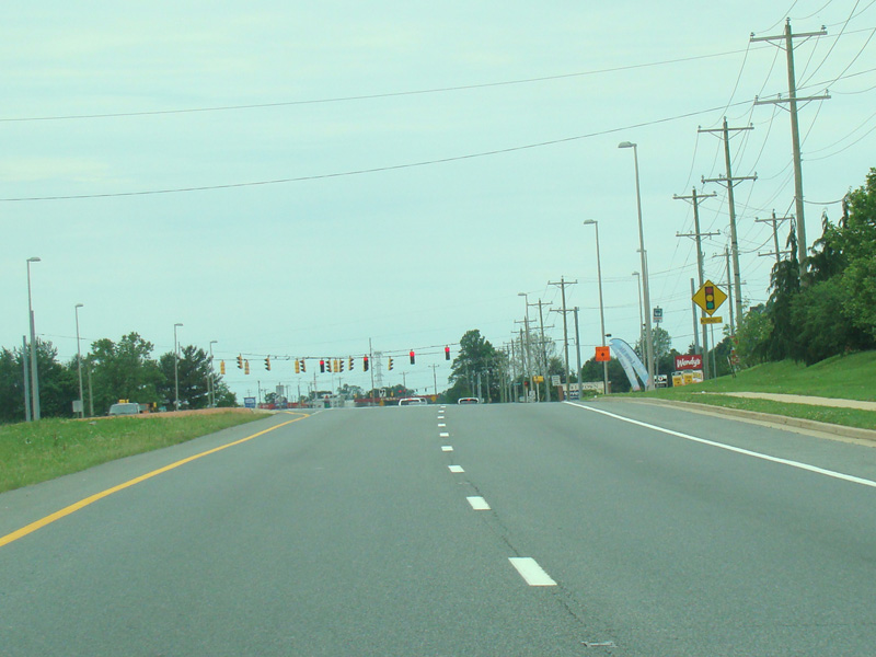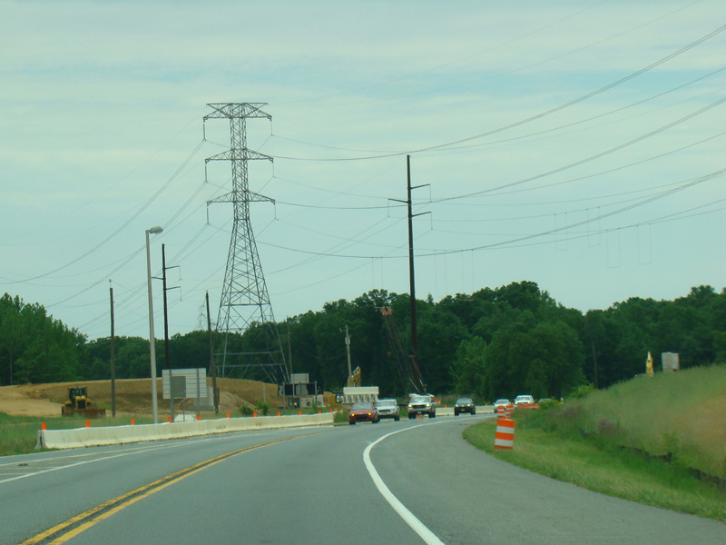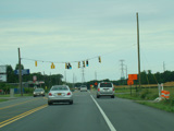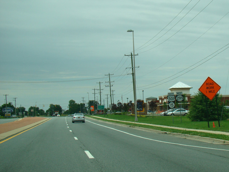 Middletown Warwick Road continues southwest to the border with Maryland. Construction work is in progress to build a new overpass for the US 301 toll highway.