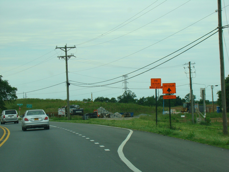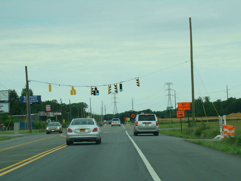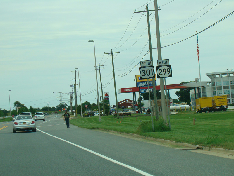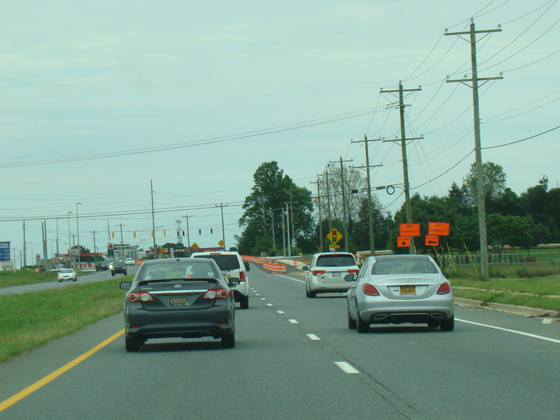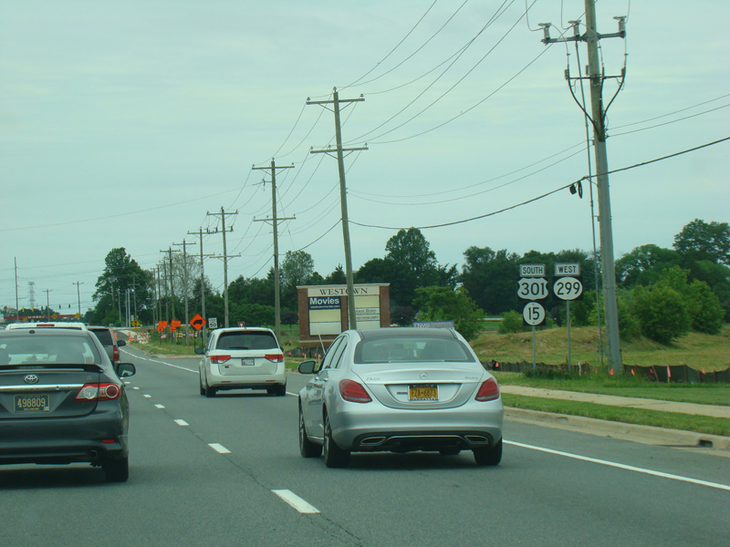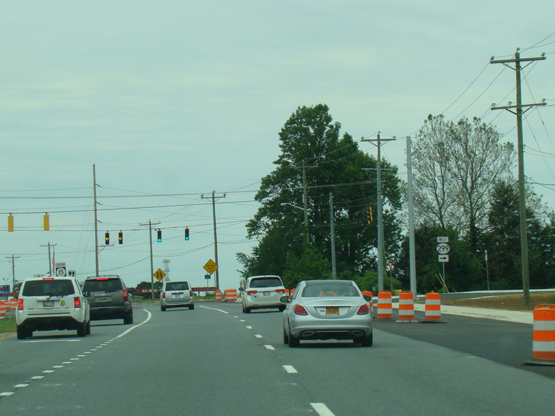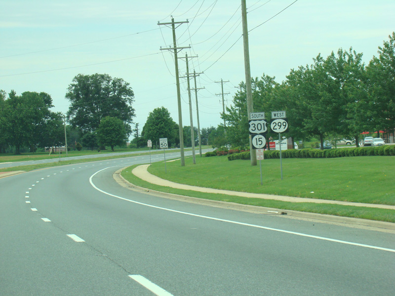 A new roadway is being built on the right beginning to carry DE 299 to the new US 301 toll highway. It is not yet open to traffic. DE 15 splits off to the left as Levels Road.