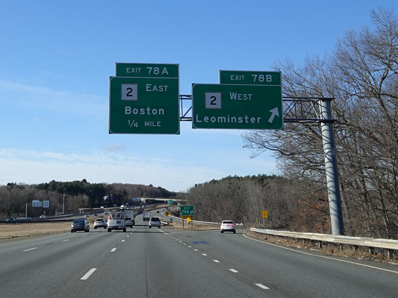 Exit 65B is for I-290 west. Exit 65A is for Washington Street (MA 85).