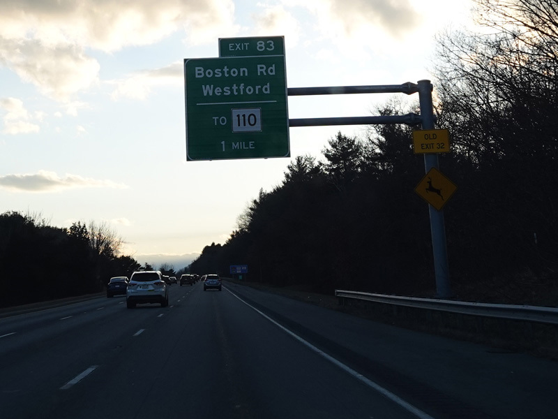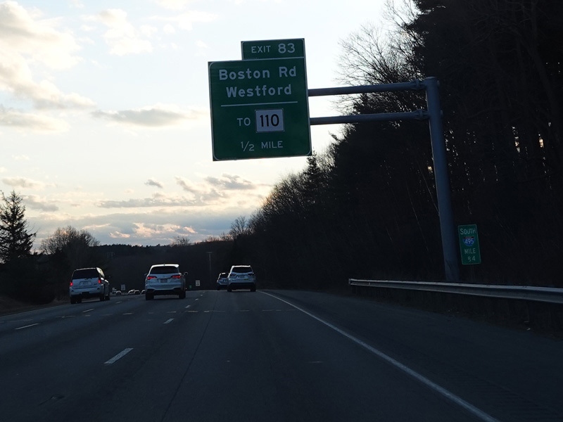 Exit 83 is for Boston Road and Littleton Road (MA 110).