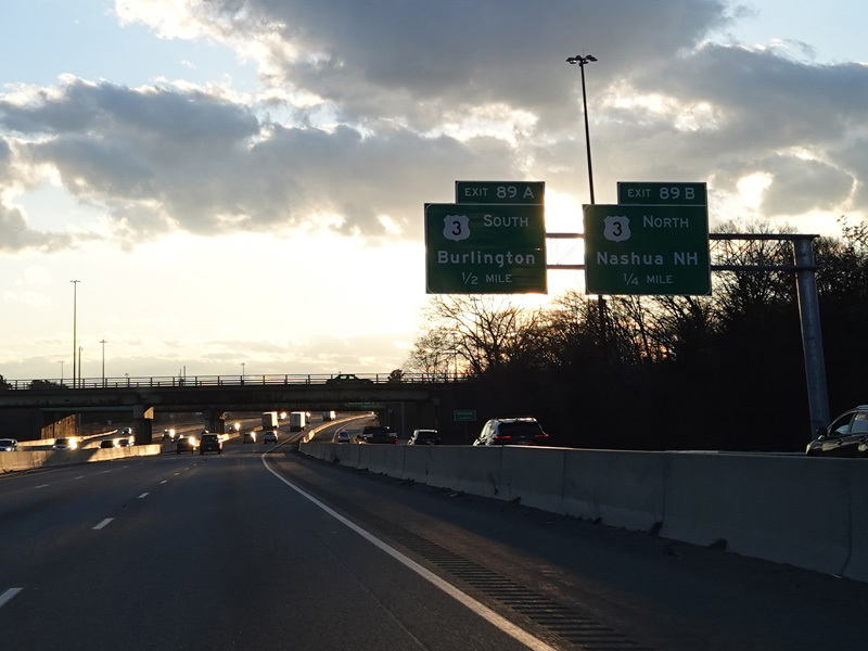 Exits 89C-B-A are for the Lowell Connector and US 3.