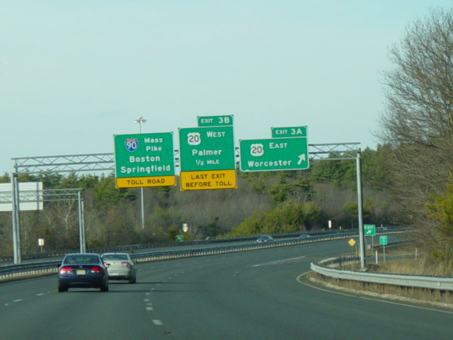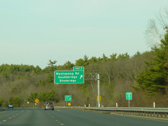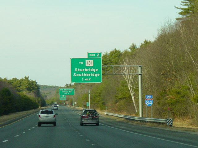These pictures show I-84 in Massachusetts as it appeared when it still used sequential exit numbers. It has since been converted to a milepost system. All of the signs have been replaced.