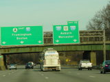 These pictures show the Massachusetts Turnpike as it appeared when it still used sequential exit numbers. It has since been converted to a milepost system. All of the signs have been replaced.