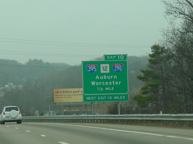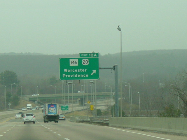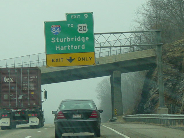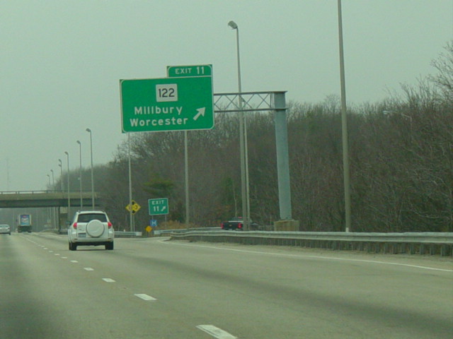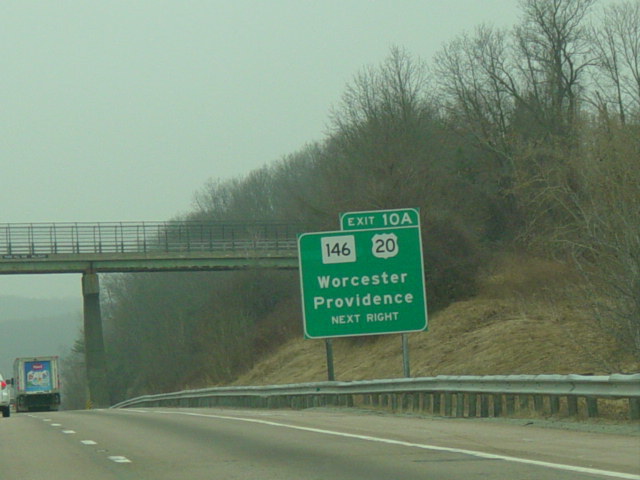 These pictures show the Massachusetts Turnpike as it appeared when it still used sequential exit numbers. It has since been converted to a milepost system. All of the signs have been replaced.