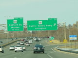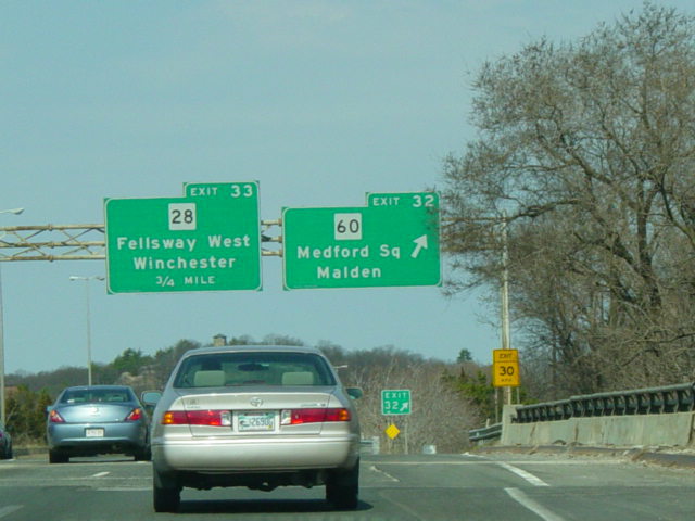 These pictures show I-93 as it appeared when it still used sequential exit numbers. It has since been converted to a milepost system. All of the signs have been replaced.
