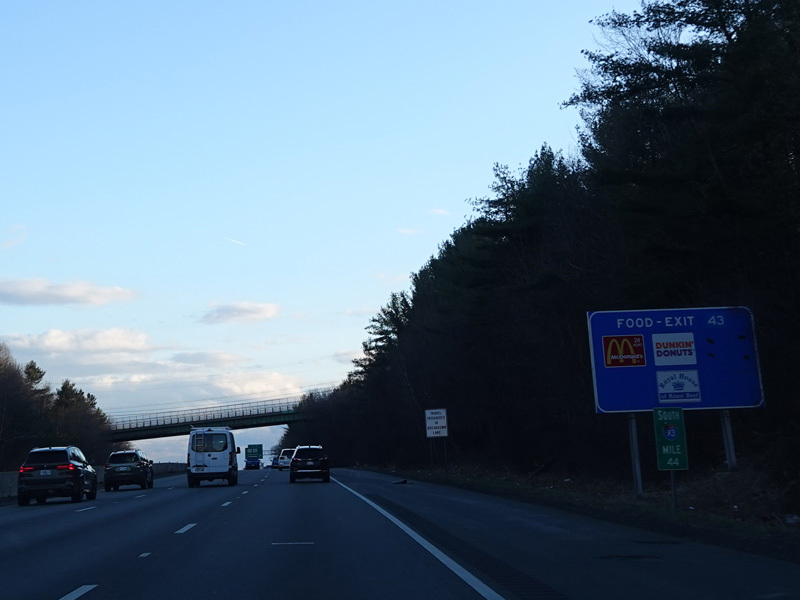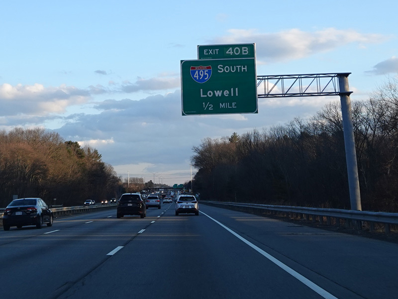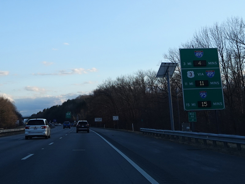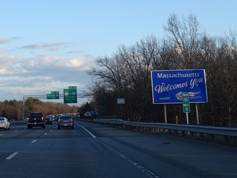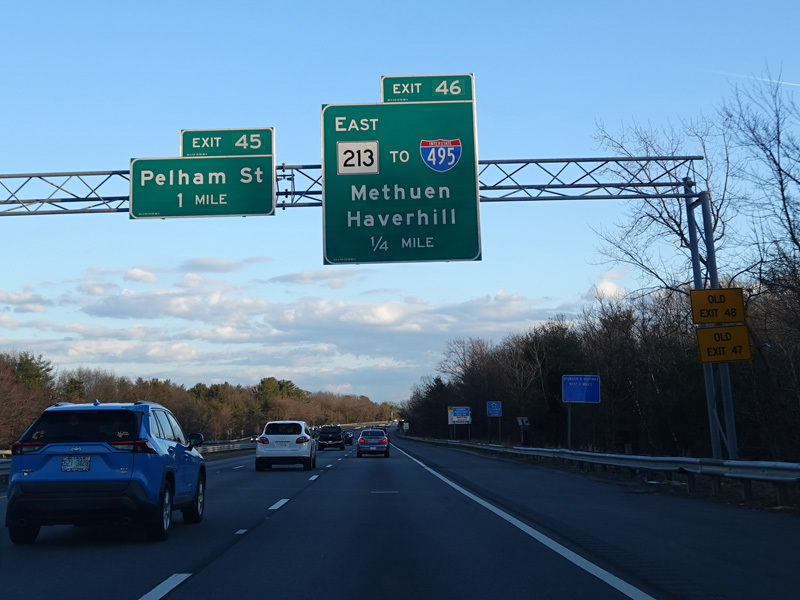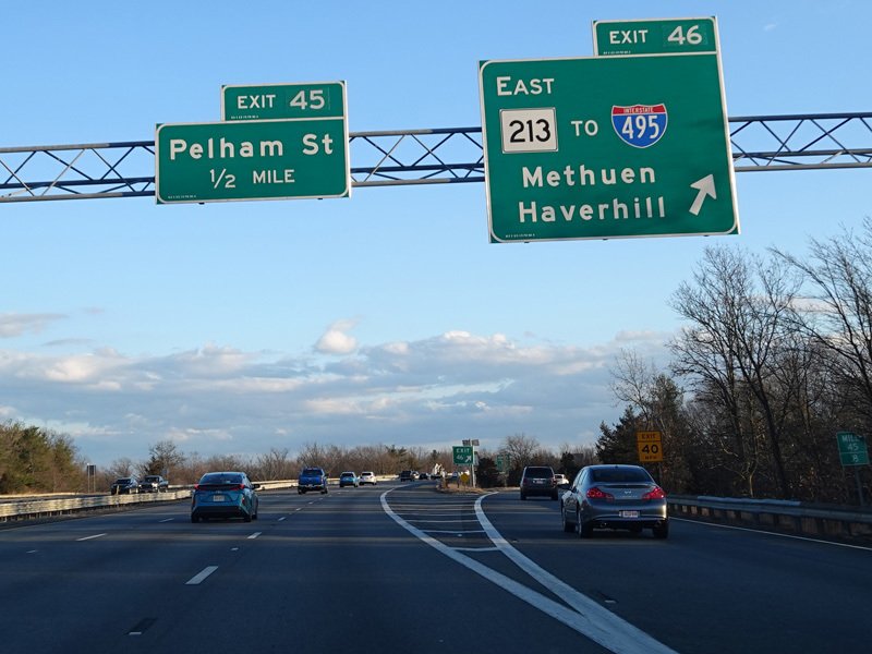 Welcome to Massachusetts! Exit 46 is for the Loop Connector (MA 213) and I-495.