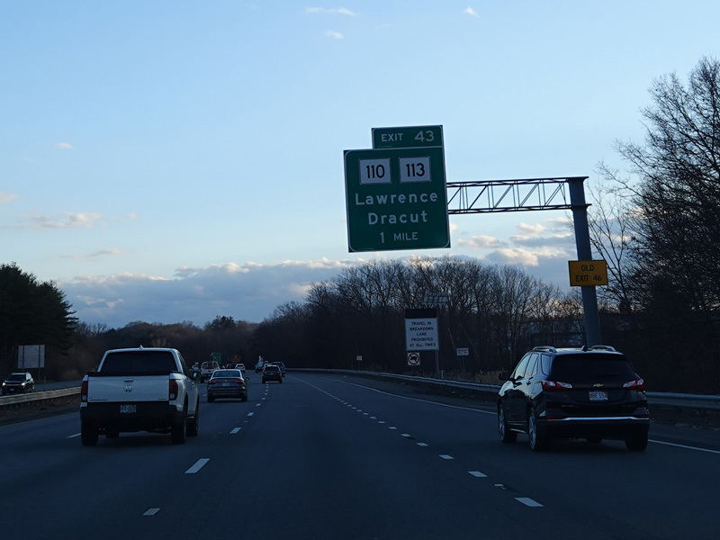 Exit 43 is for Lowell Street (MA 110/MA 113).