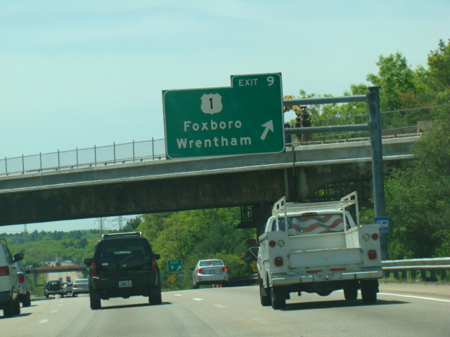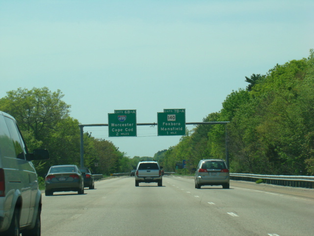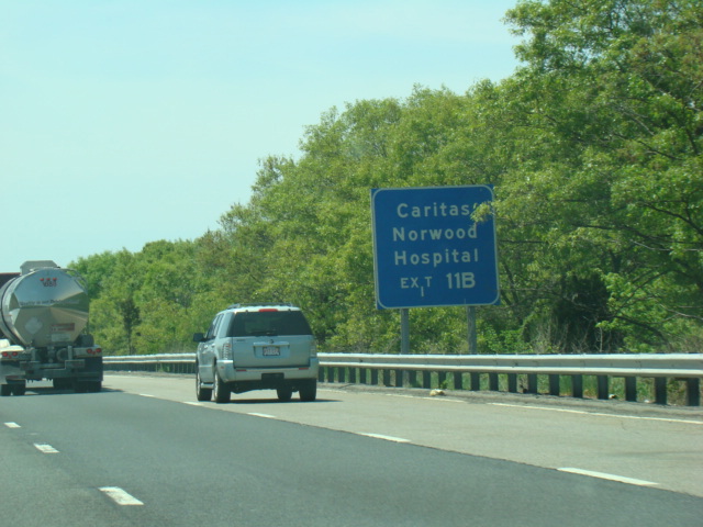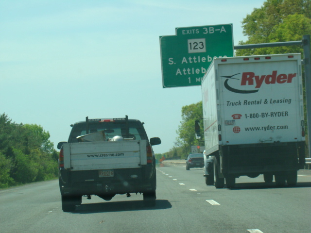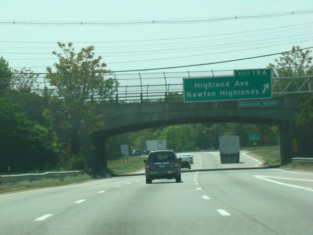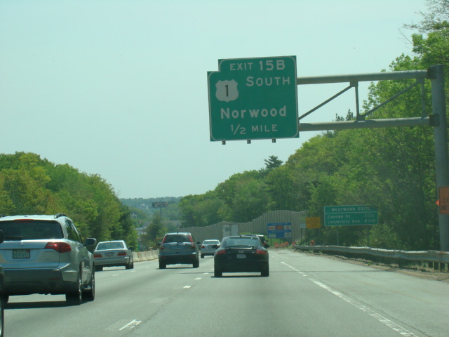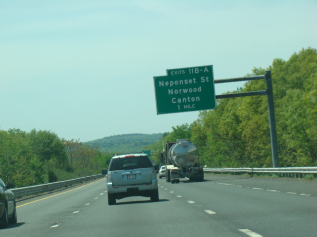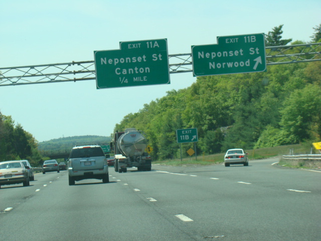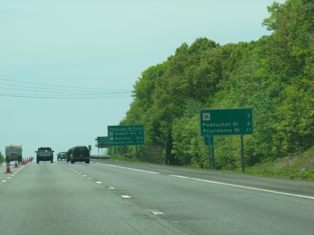 Exits 2B-A are for Newport Avenue (MA 1A) and US 1. Exit 1 is for Broadway (US 1) south. It is the last exit in Massachusetts. I-95 continues straight ahead into Rhode Island.