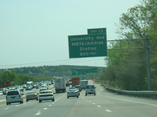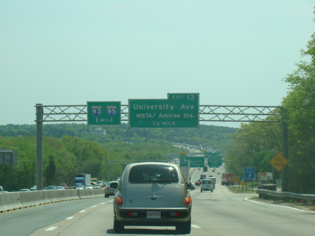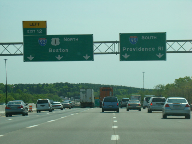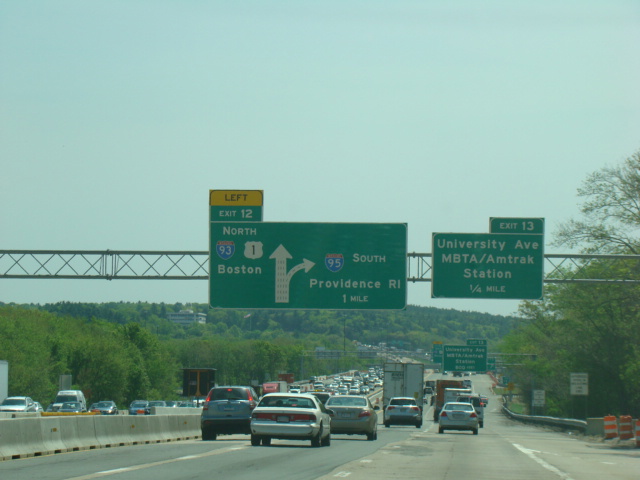 Exit 12 is for I-93/US 1 north. It is a three-lane left exit. MA 128 ends at this interchange.