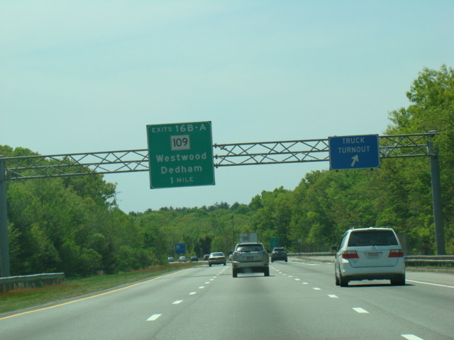 There is a truck turnout between exit 17 and exit 16B. Exits 16B-A are for MA 109.