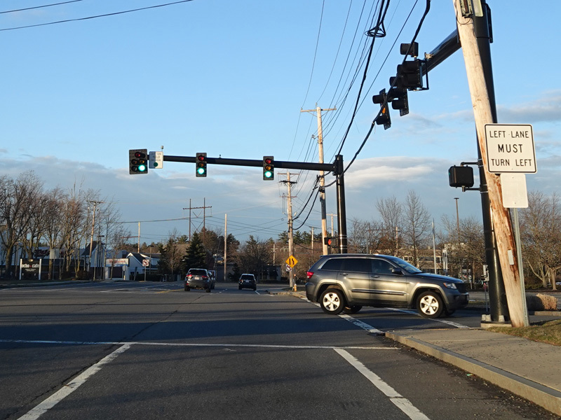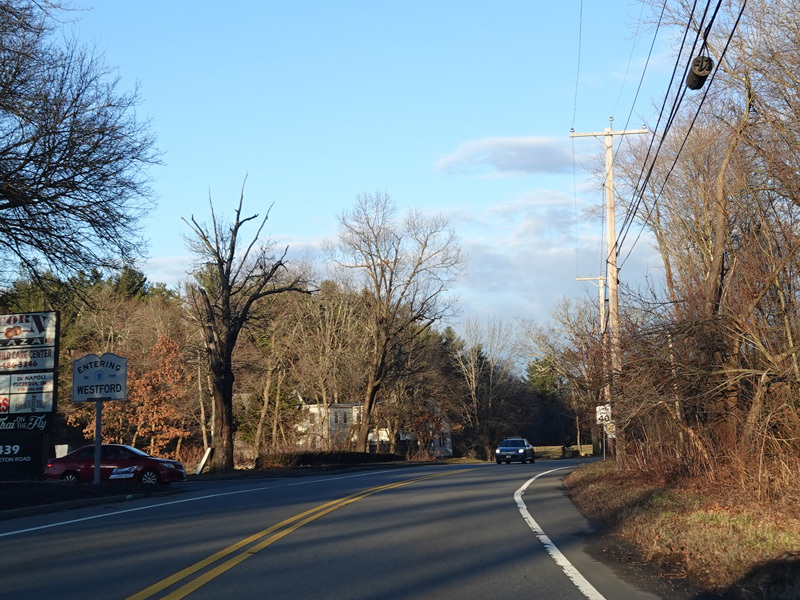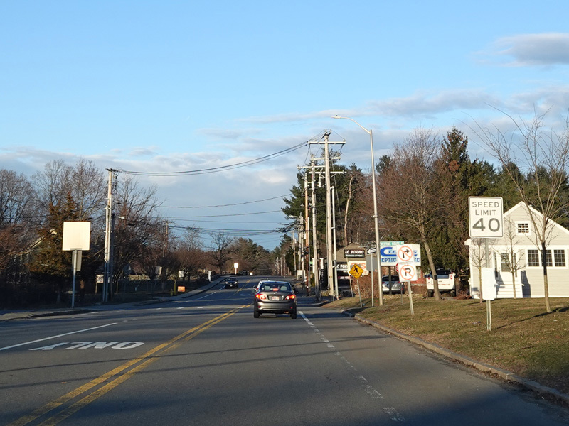 Coming into the downtown area of Westford, Littleton Road widens to four lanes again.