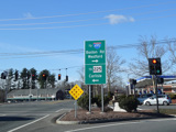 Boston Road begins on the right at a traffic light and provides access to I-495. Carlisle Road begins on the left and runs south to MA 225.