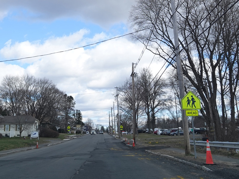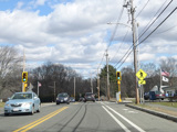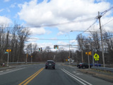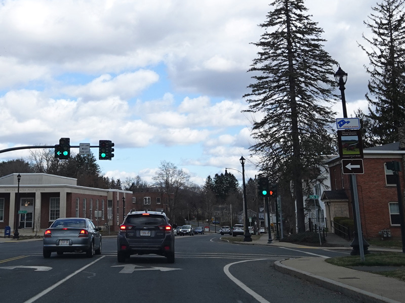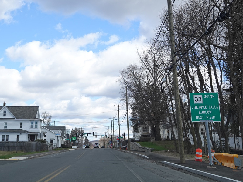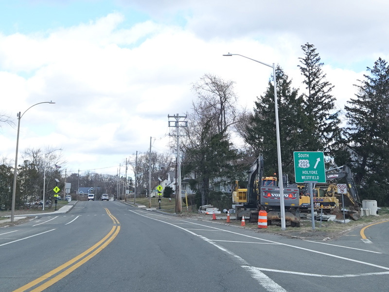 Hadley Street (MA 47) begins on the left at a traffic light. Signage here could use some improvement.