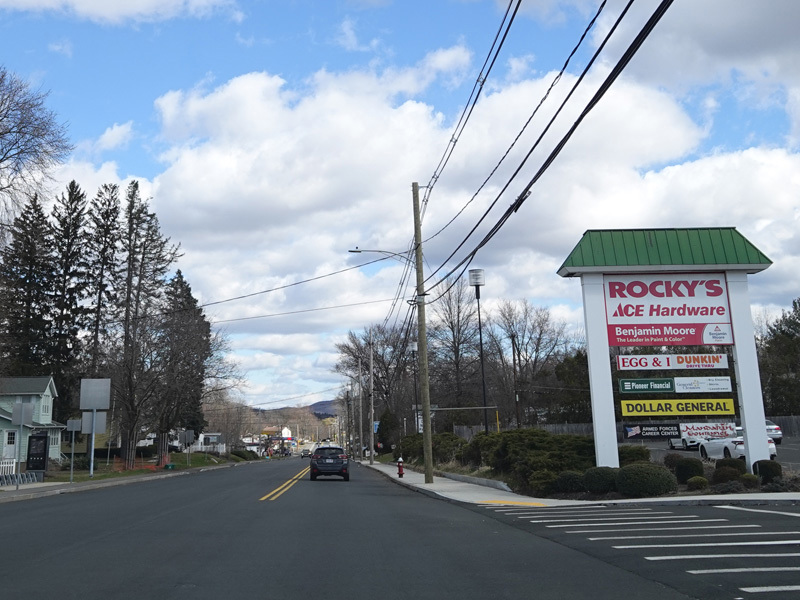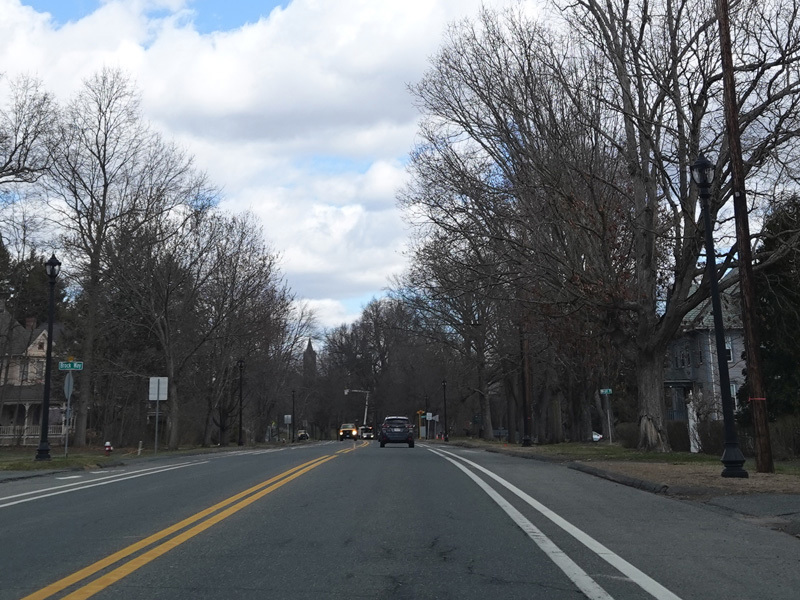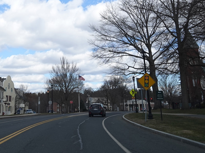 Newton Street continues north into the downtown area of South Hadley, where it changes names to become College Street.