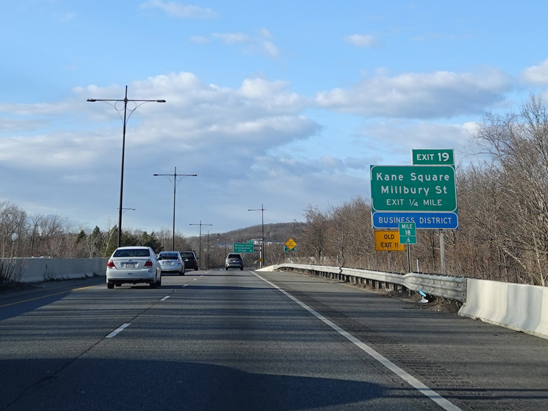 Exit 20 is for Providence Street (MA 122A) north and McKeon Road. It also provides access to I-290 west.