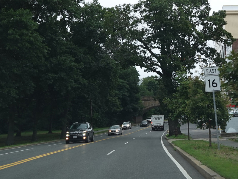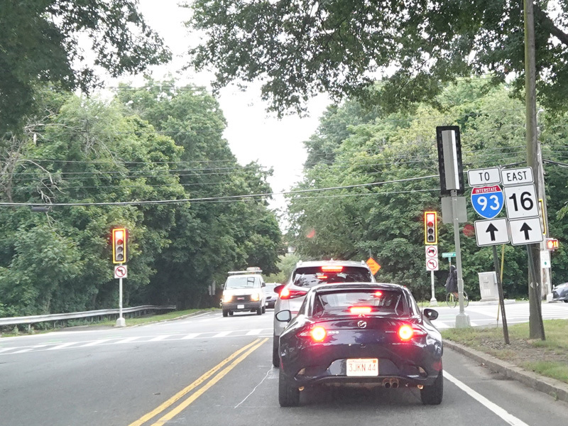 Alewife Brook Parkway ends at a rotary at Mystic Valley Parkway. Take the first exit from the rotary to continue east on MA 16.