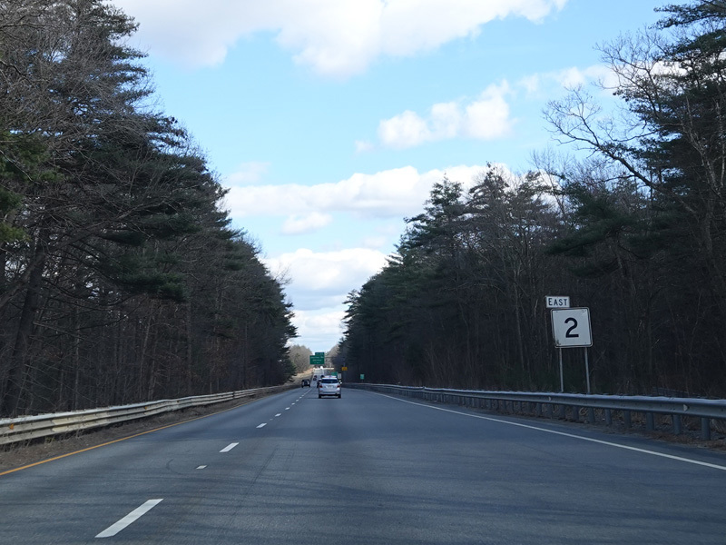 Taconic Trail, Cold Spring Road, Main Street, State Road, West Main Street, Veterans Memorial Drive, Union Street, Mohawk Trail, Tea Street, French King Highway, Concord Turnpike, Massachusetts Avenue, Union Turnpike, Elm Street, Alewife Brook Parkway, Fresh Pond Parkway, Gerry's Landing Road, Memorial Drive, Boston University Bridge, Mountfort Street, Park Drive, Beacon Street, Commonwealth Avenue, Arlington Street, Boylston Street, Charles Street